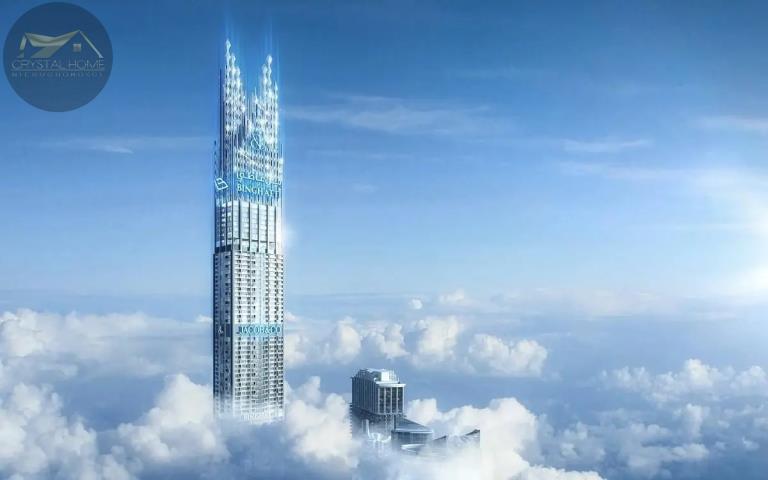 Bezkonkurencyjny Bogactwo Korona stanowi zwieńczenie kodu architektonicznego i zegarmistrzowskiego sygnowanego przez Binghatti i Jacob & Co, emblemat i najczystszą reprezentację marek. Korona znajduje się na najwyższej wysokości hiperwieży, oświetlając niezrównane bogactwo dzięki zmysłowemu i fascynującemu konstruktywnemu pokazowi kultowych i charakterystycznych diamentów Jacoba.