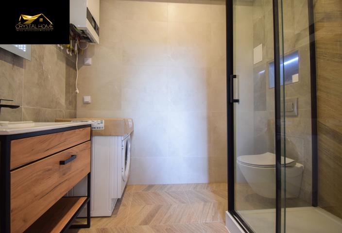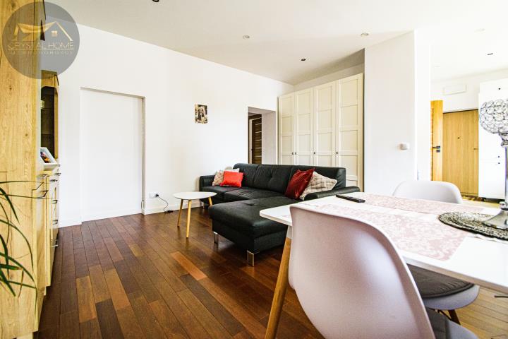 Na podłogach kafle i piękna drewniana deska. W całym mieszkaniu jest ogrzewanie podłogowe.
