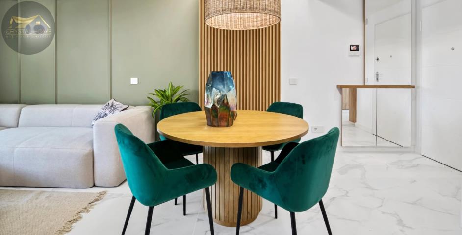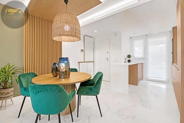 Elegancka i w pełni wyposażona kuchnia idealnie łączy się z jadalnią i z przytulnym salonem z bezpośrednim wyjściem na taras. Możesz cieszyć się przestronną i wygodną przestrzenią idealną do gotowania, jedzenia i relaksu z przyjaciółmi i rodziną.