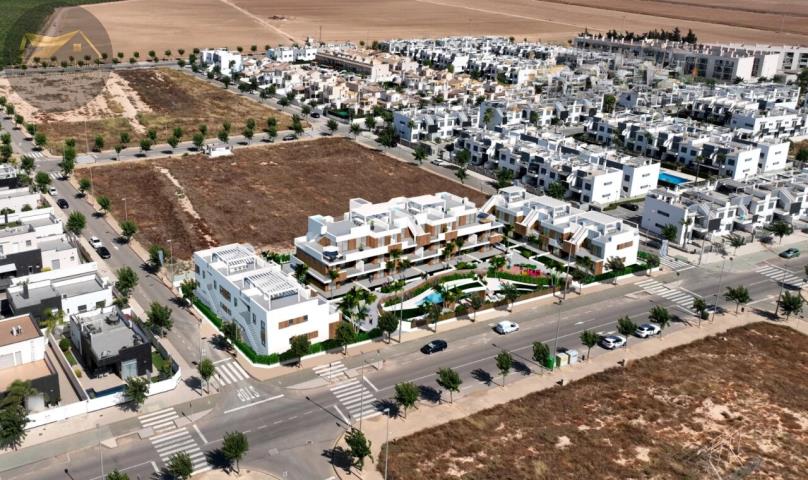 Nowa inwestycja kameralnego osiedla mieszkalnego w Pilar de la Horadada, zlokalizowana w bliskim otoczeniu wszystkich usług, obiektów sportowych, w pobliżu kilku pól golfowych i 5 minut jazdy samochodem od Morza Śródziemnego.