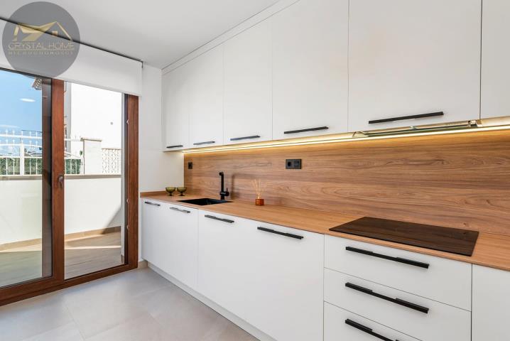 Wewnątrz mieszkania są jasne, przestronne i funkcjonalne. Półotwarta kuchnia jest w pełni wyposażona w nowoczesny sprzęt AGD i posiada barek śniadaniowy, który łączy ją z salonem. Znajdzie się tu wystarczająco dużo miejsca na stół jadalny, sofę i miejsce na telewizor. Masz stąd również bezpośrednie wyjście na taras o powierzchni 7 m2, na którym można cieszyć się morską bryzą i pięknym widokiem na okolicę. Sypialnie są wygodne i wyposażone w szafy wnękowe, a łazienki są stylowe i wyposażone w nowoczesne kabiny prysznicowe.