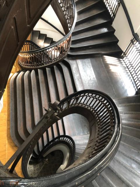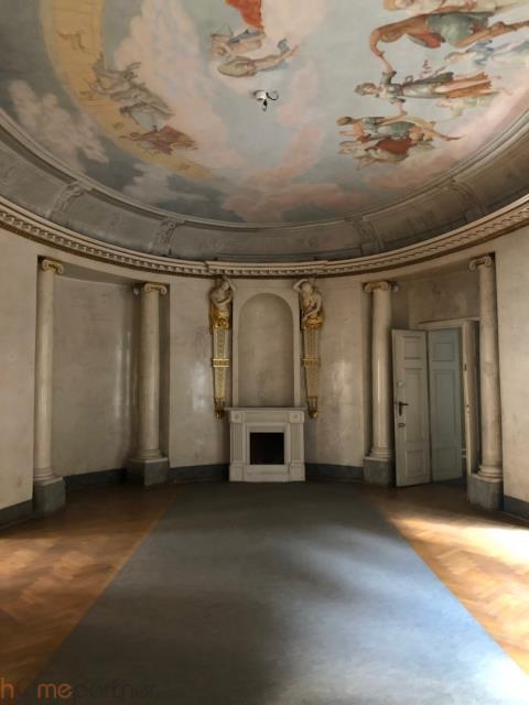The interiors of the former palace show a complex layout of rooms that changes during the subsequent stages of expansion and changes in the functions of individual rooms. In the building, the original layout of suite rooms and representative interiors have been preserved: a columned hall, an oval staircase with a palace layout, with an extensive system of beautifully preserved stairs, and an oval study with a fireplace, plafond and rich decorations in the spirit of Berlin Classicism. Shafts and casings of technical elevators also survived. Wooden window joinery.
