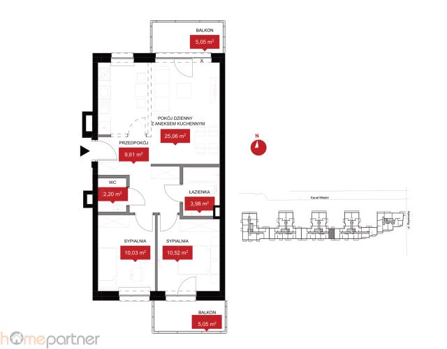 Do mieszkania przynależą 2 balkony z czego jeden z nich jest z widokiem na rzekę, oba o powierzchni po 5,05 m2