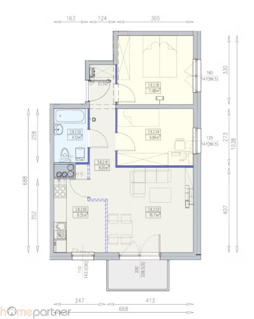- pokoju 11,88 m2