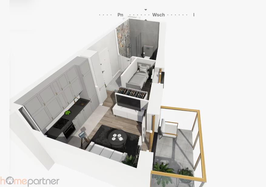 Mieszkanie o powierzchni 25,42 m, składa się z: