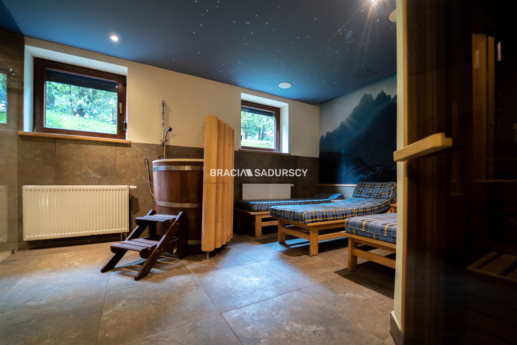 Oprócz tego znajduje się tam także beczka i prysznic oraz część relaksacyjna z leżakami.