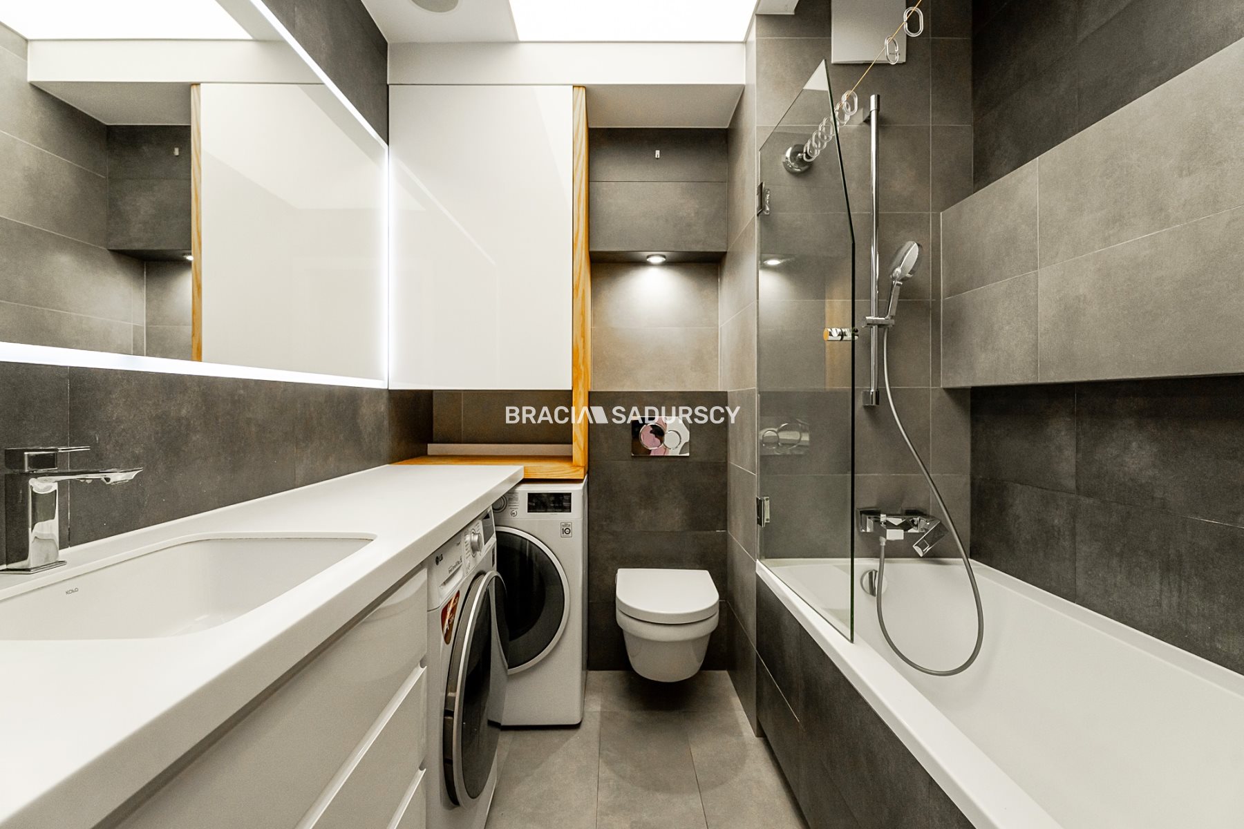 - łazienka z wanną ( funkcja prysznica) wyposażona w osobną pralkę i suszarkę