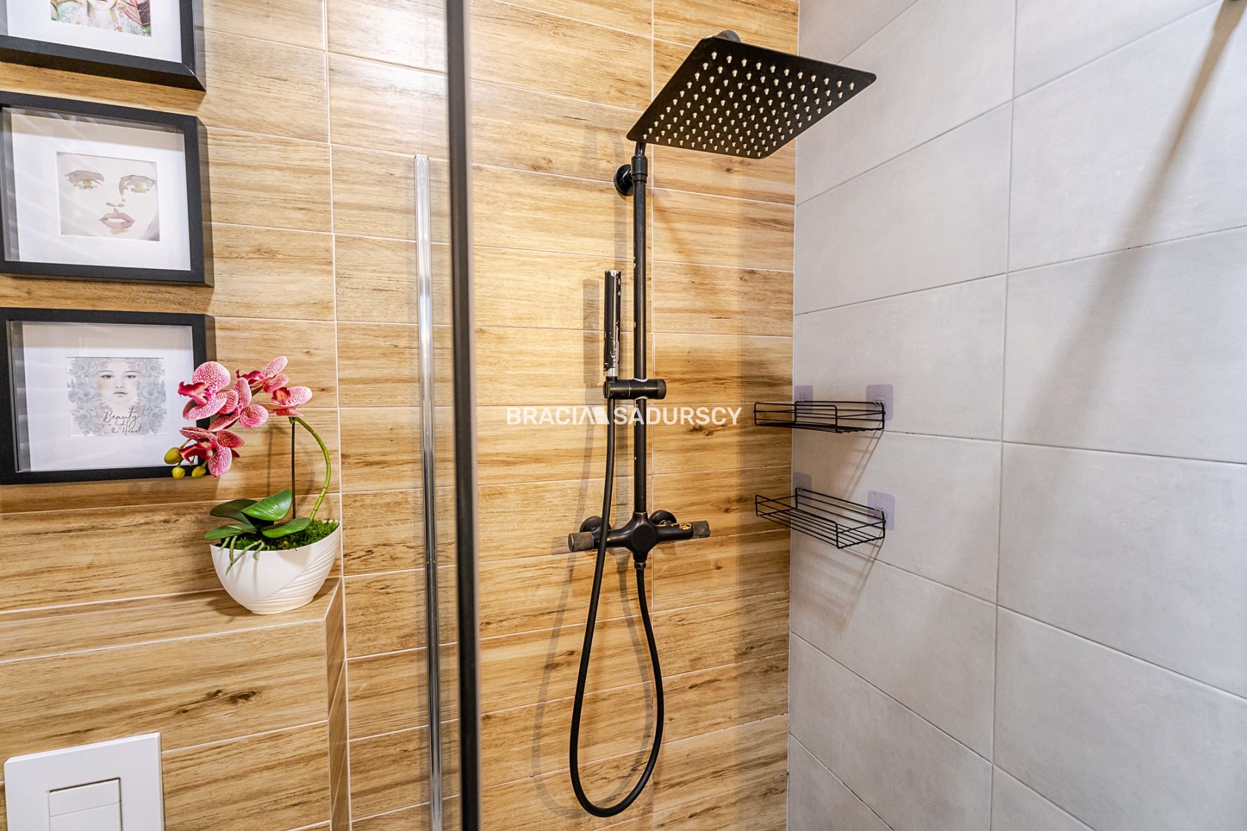 46 mkw jasnej, nowoczesnej przestrzeni ze wszelkimi wygodami - duże okna, ogrzewanie miejskie, w pełni wyposażone, nowoczesne wykończenie i stylowe wnętrze, w pełni wyposażona kuchnia i łazienka w wysokim standardzie, brak balkonu - mniej hałasu i większa prywatność.