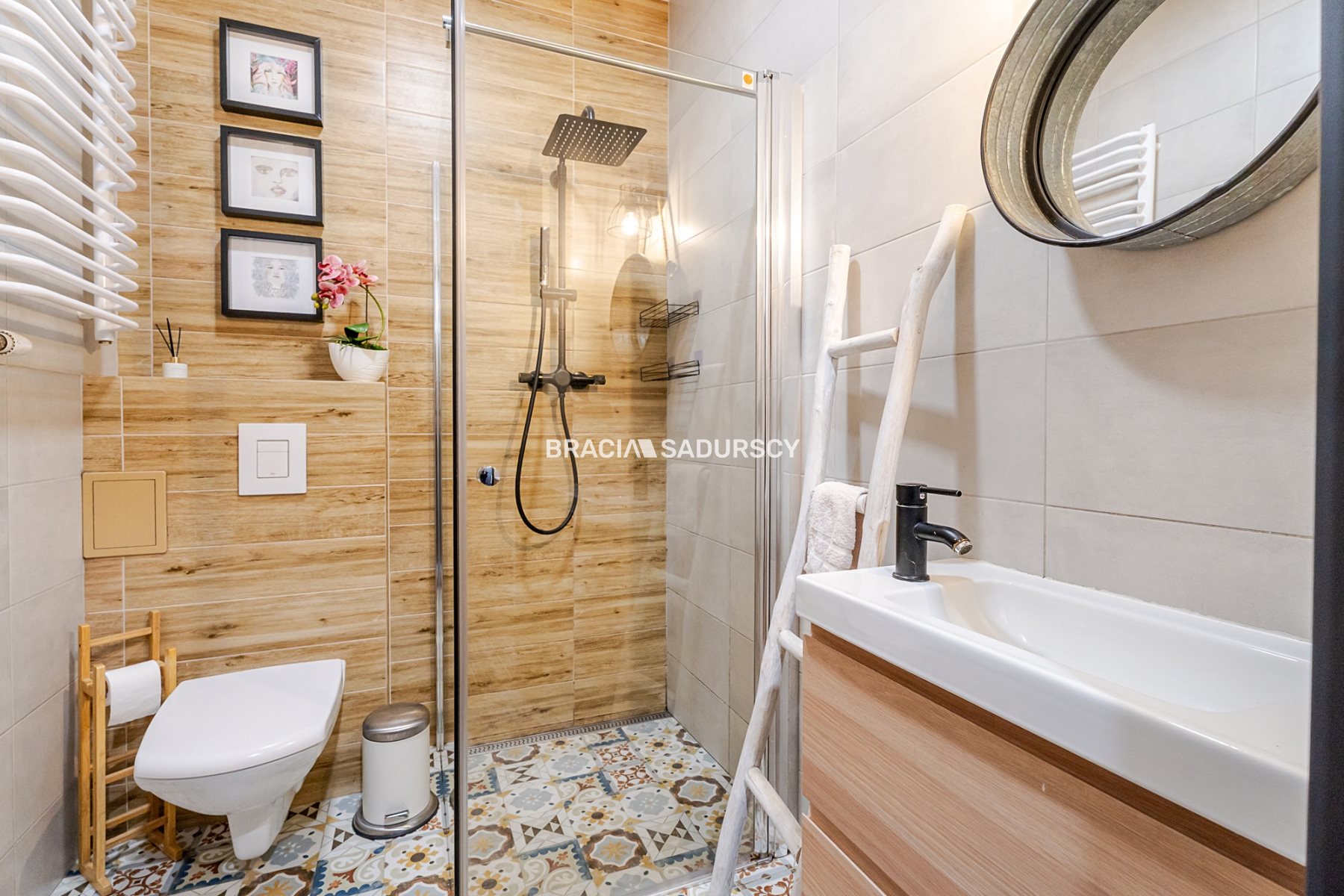 Mieszkanie w sercu starego Podgórza , 2 pokoje , w tym przestronny i funkcjonalny salon z jadalnią i dużym aneksem kuchennym .