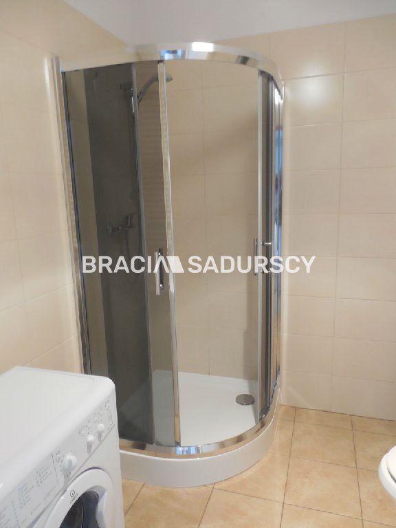 łazienka: kabina prysznicowa, pralka.