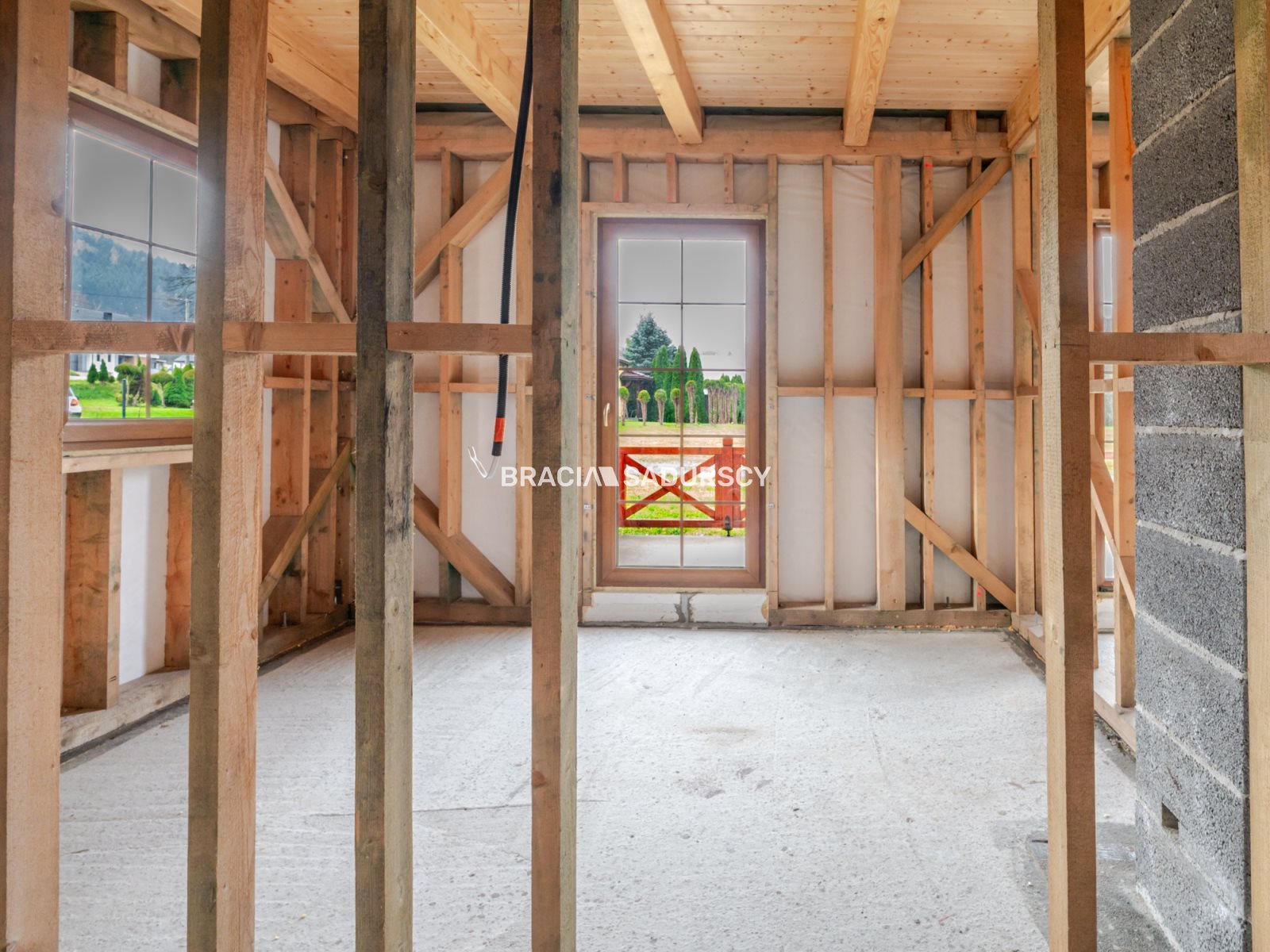 Dom wolnostojący w stanie surowym zamkniętym , wybudowany w 2024 roku z bali drewnianych , co zapewnia wyjątkowy klimat i ponadczasowy charakter.