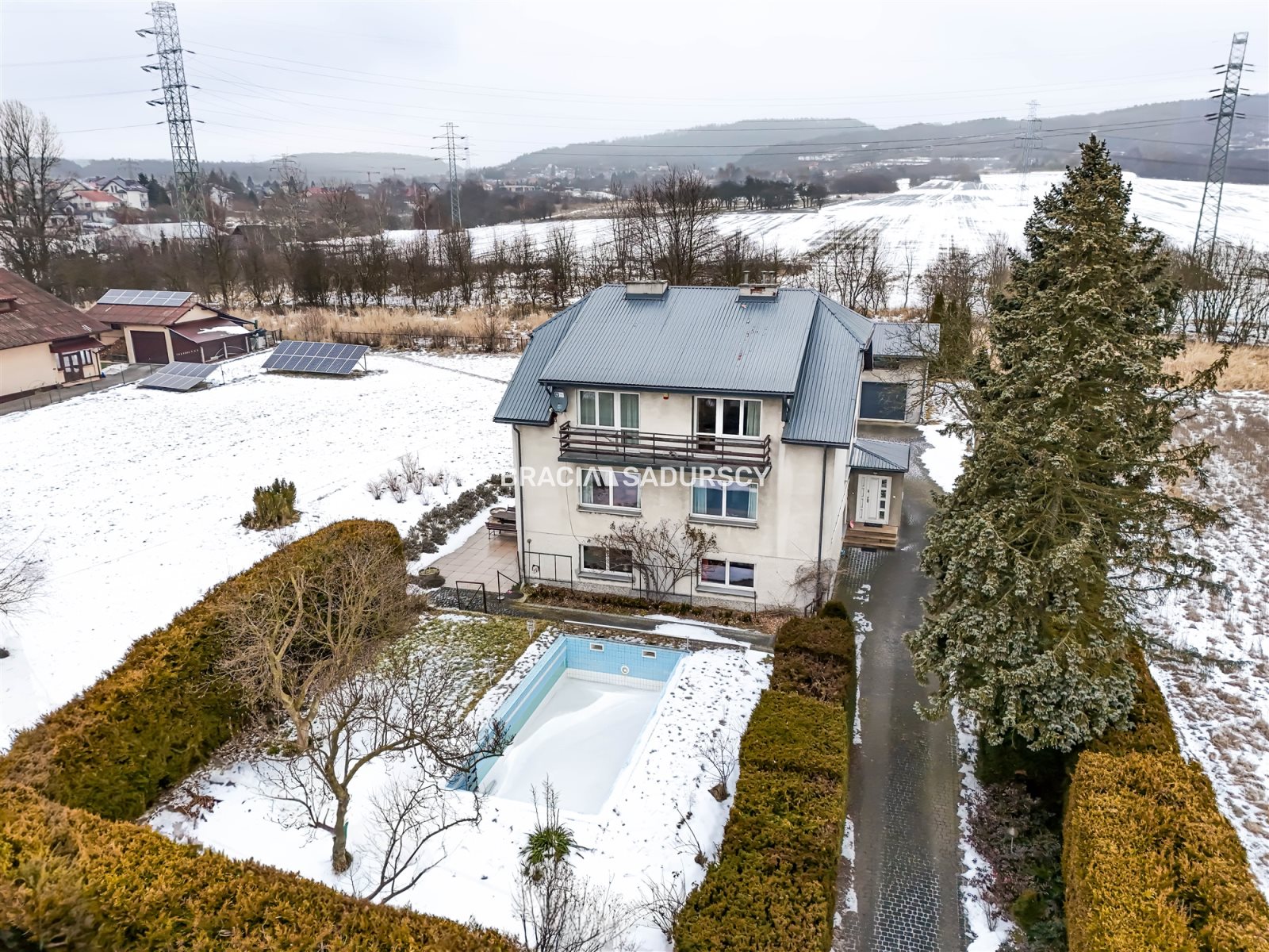 Na sprzedaż przestronny, funkcjonalny dom wolnostojący o powierzchni całkowitej 313,49 m² ( użytkowej 177m2 ) - położony na pięknie zagospodarowanej działce 15,92 ar, w spokojnej, zielonej okolicy z bardzo dobrą komunikacją z Krakowem.