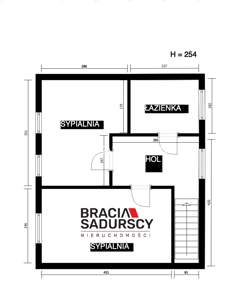 - na piętrze z przedpokoju, dwóch sypialni każda ok. 10 m2 oraz łazienki ok. 4m2