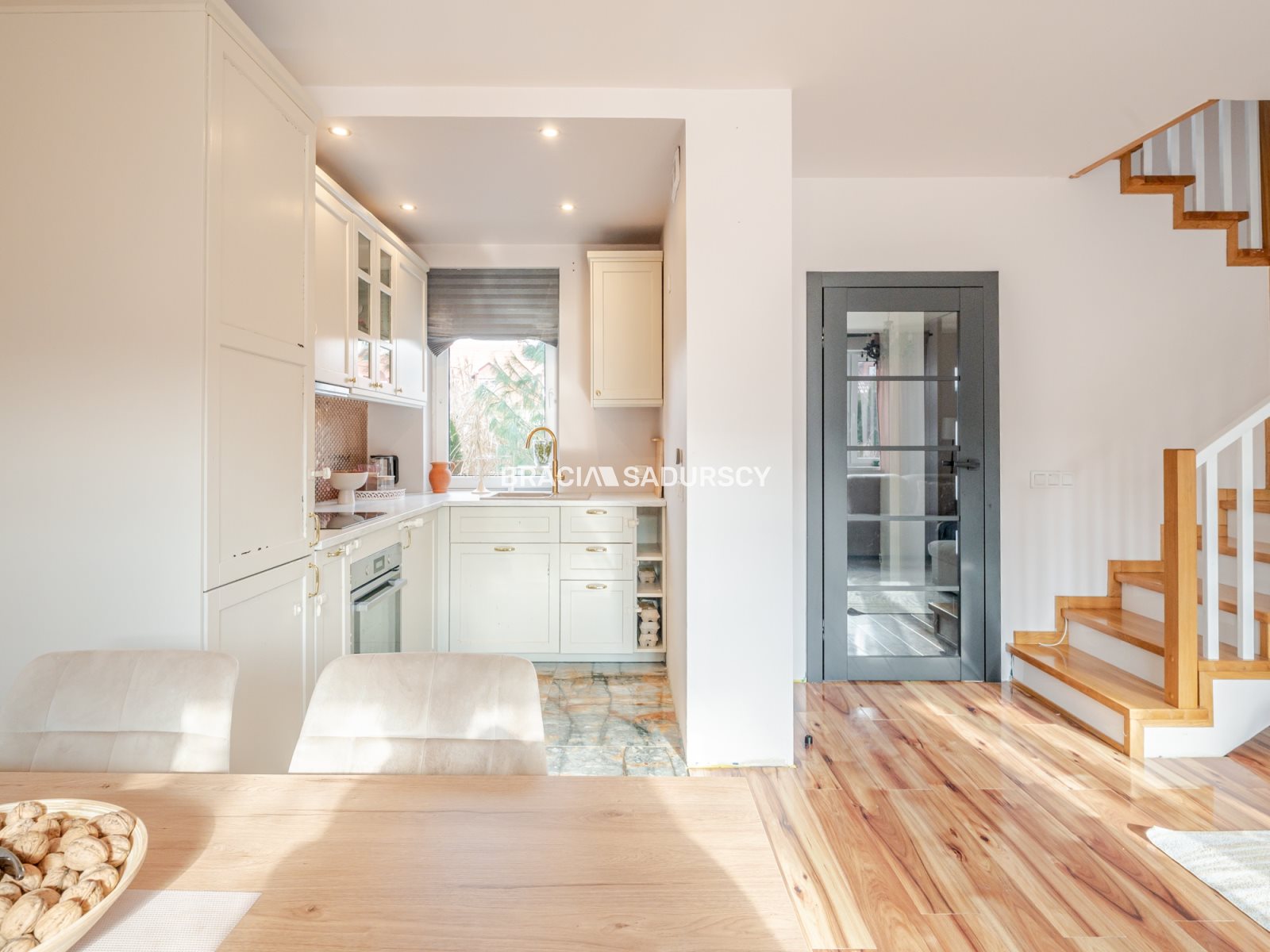 - ciepła woda i ogrzewanie pochodzą z kotła gazowego, dwufunkcyjnego umieszczonego na piętrze w łazience