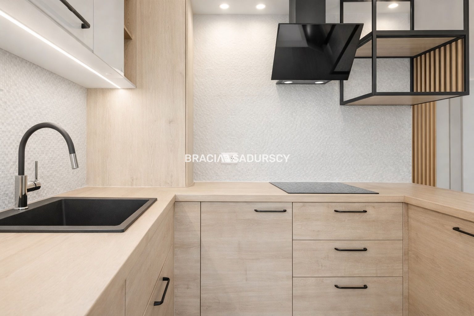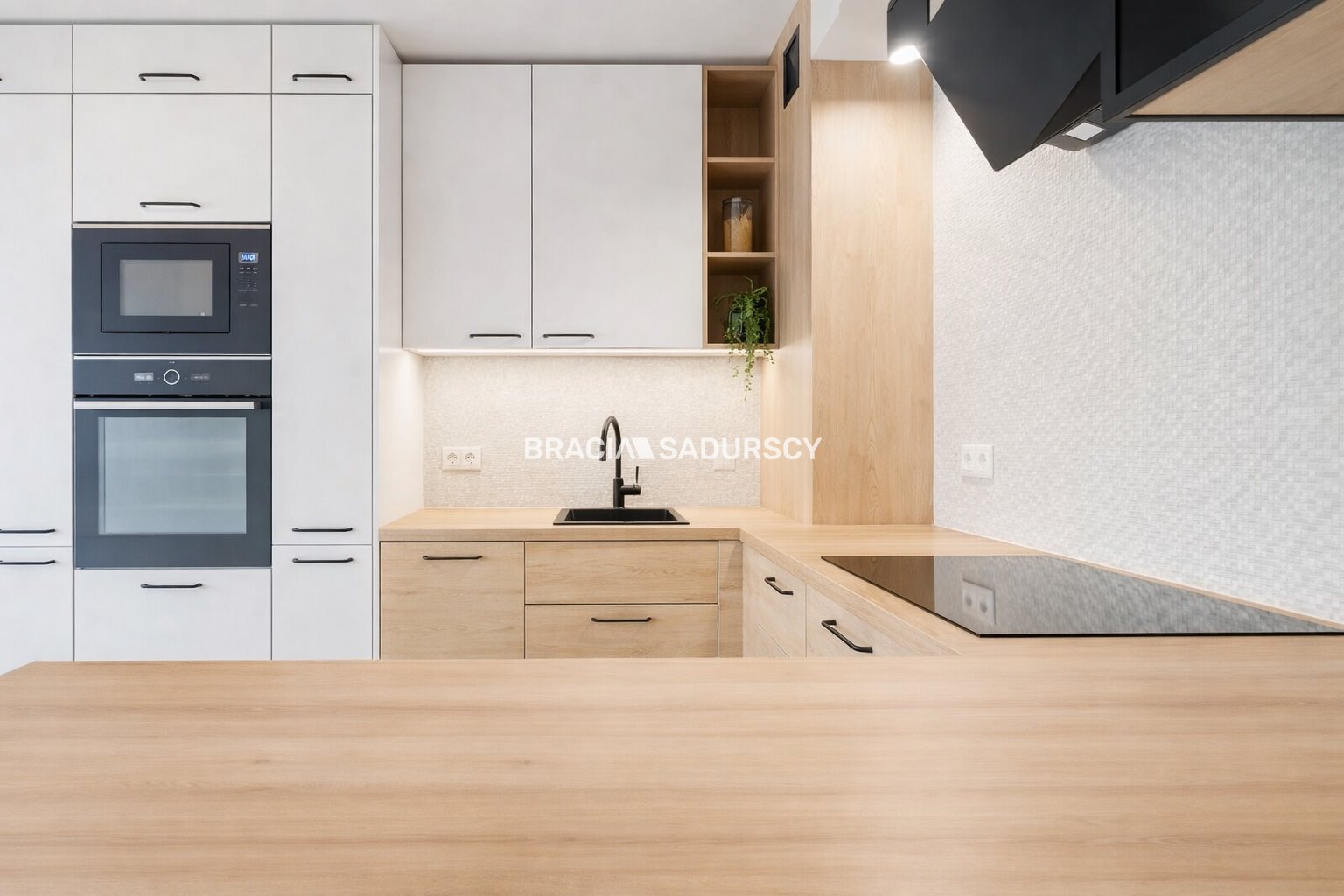W kuchni także dbałość o każdy element, sprzęt wysokiej jakości marki Whirpool (płyta, piekarnik, mikrofalówka, zmywarka).
