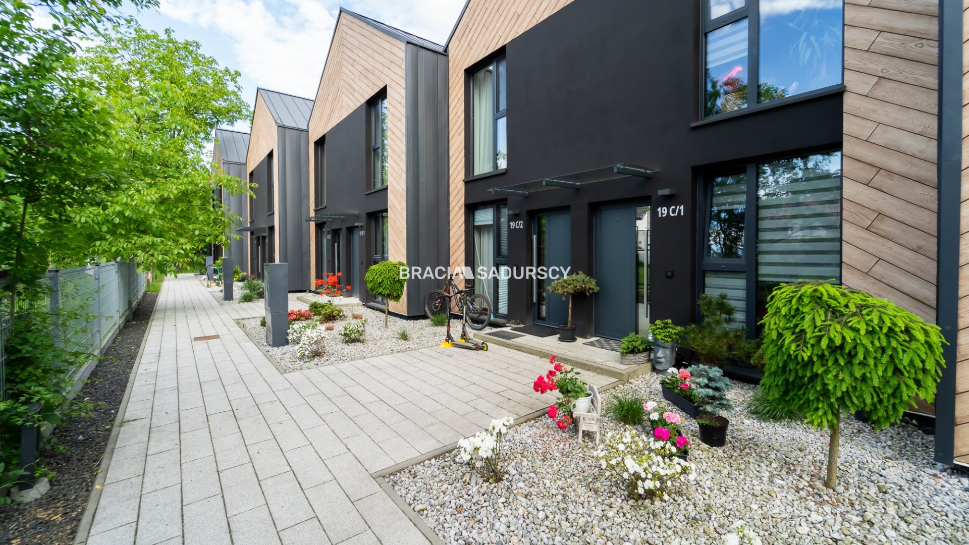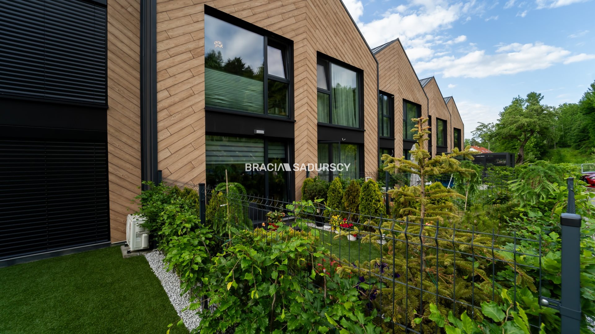 Dom jest środkowym segmentem w zabudowie szeregowej, w urokliwym miejscu, pełnym zieleni i spokoju w sercu myślenickiego Zarabia.