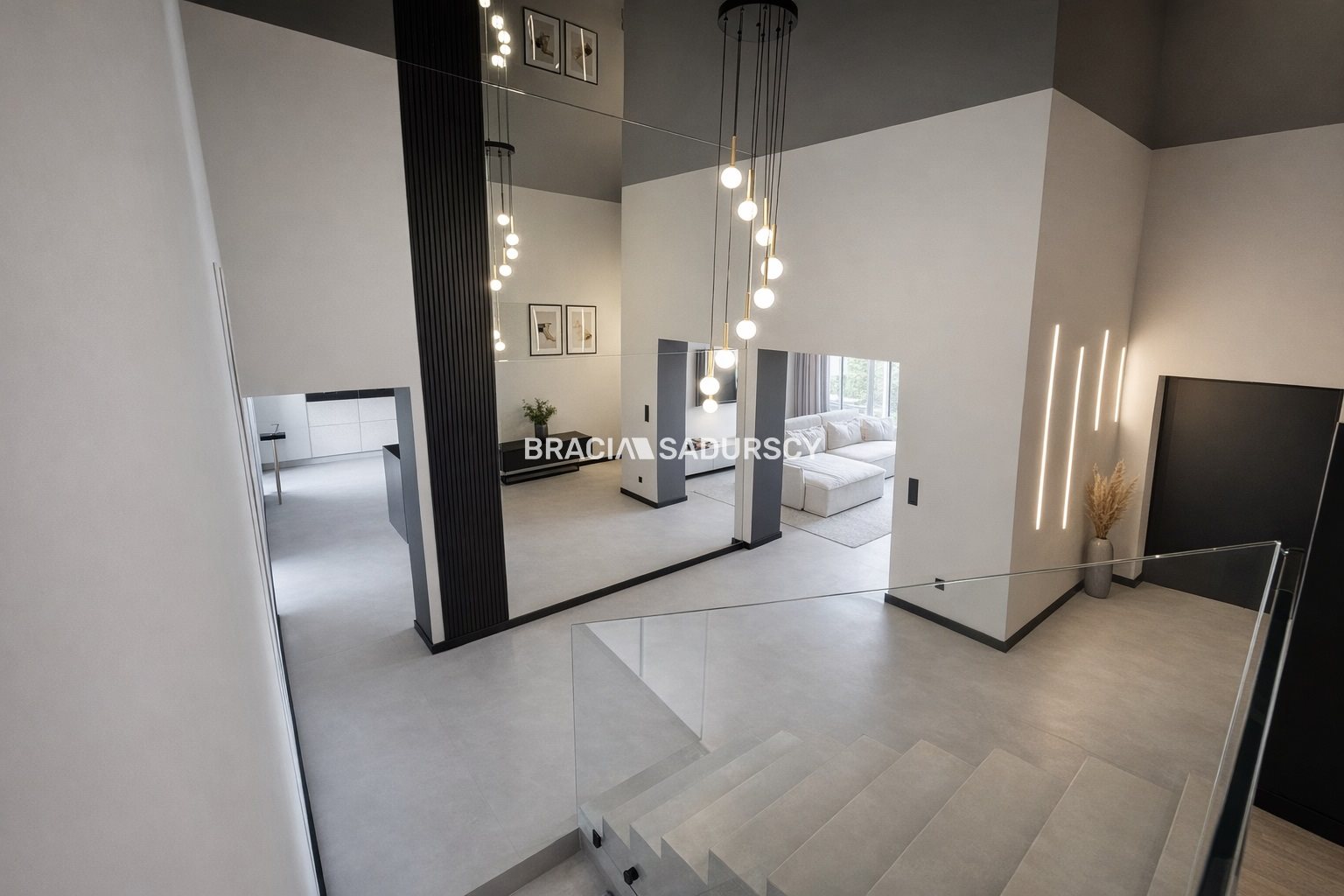 Dom został wykończony w wysokim standardzie z dbałością o detale. Funkcjonalny układ pomieszczeń zapewnia komfort zarówno dla dużej rodziny, jak i osób pracujących z domu.