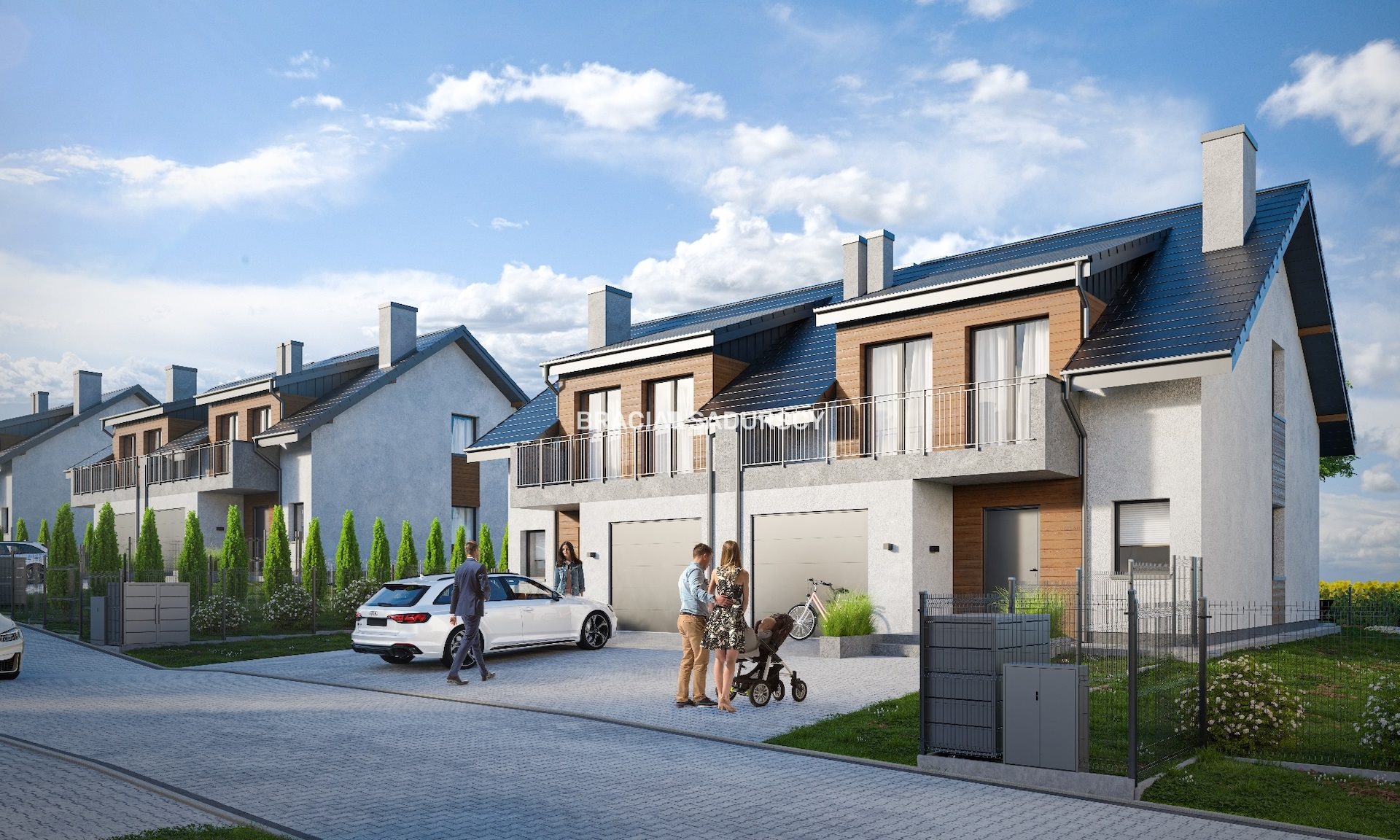 Pozwolenia na budowę 6 bliźniaków (12 domów) według projektu Dom w klemematisach 20 B o powierzchni użytkowej 121,51 m2 z możliwością powiększenia na podstawie projektu zamiennego do 128,51m2. Przygotowany jest też projekt podziału na 12 działek pod każdy dom oraz drogę wewnętrzną.