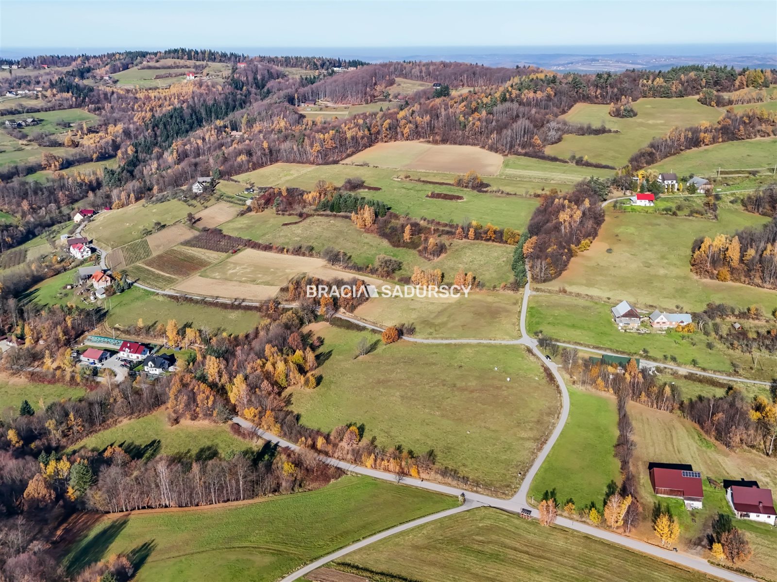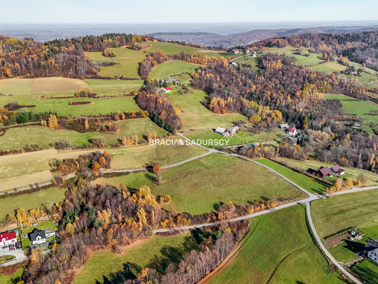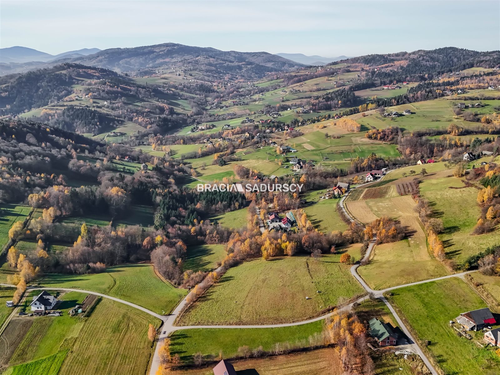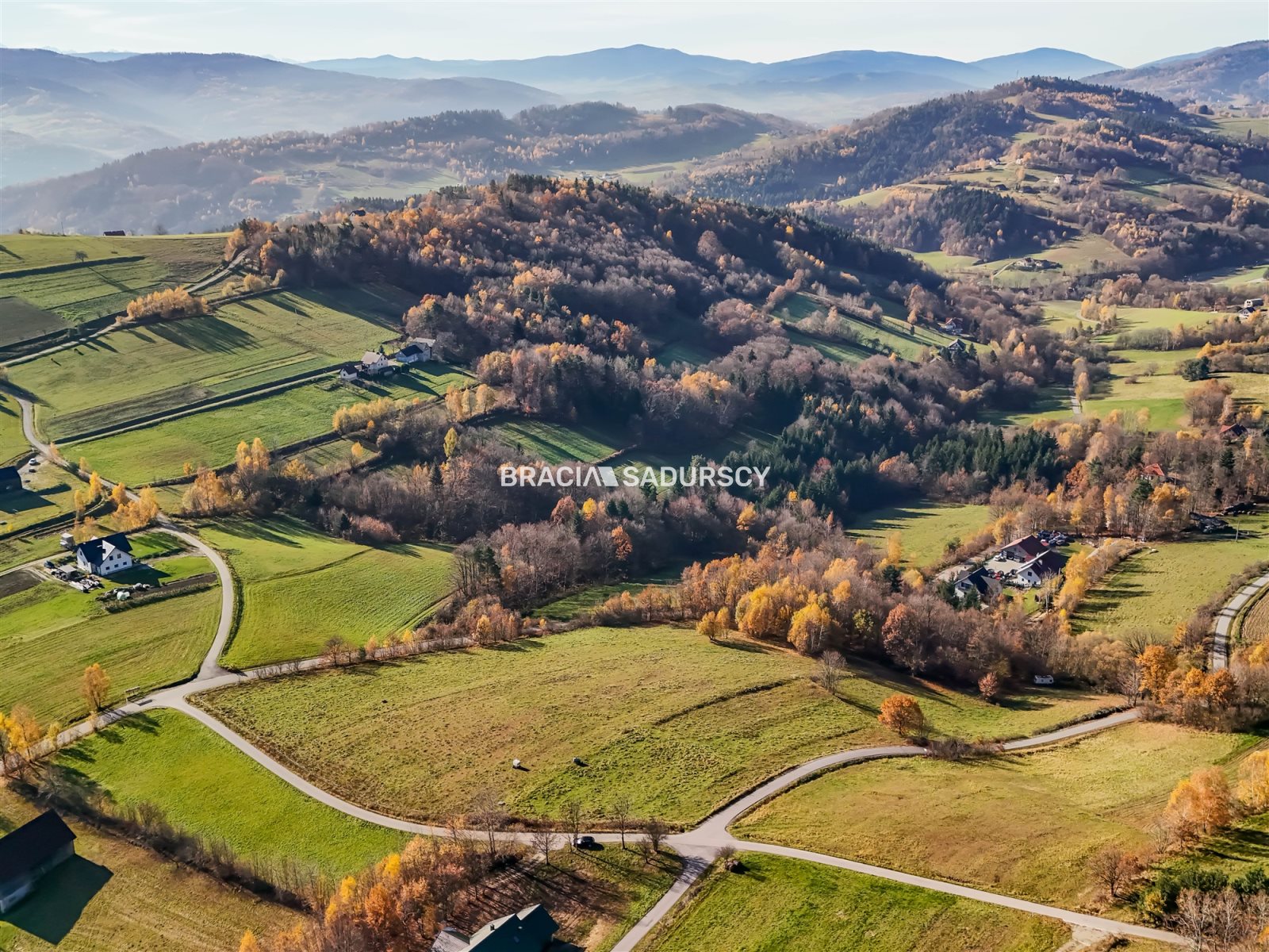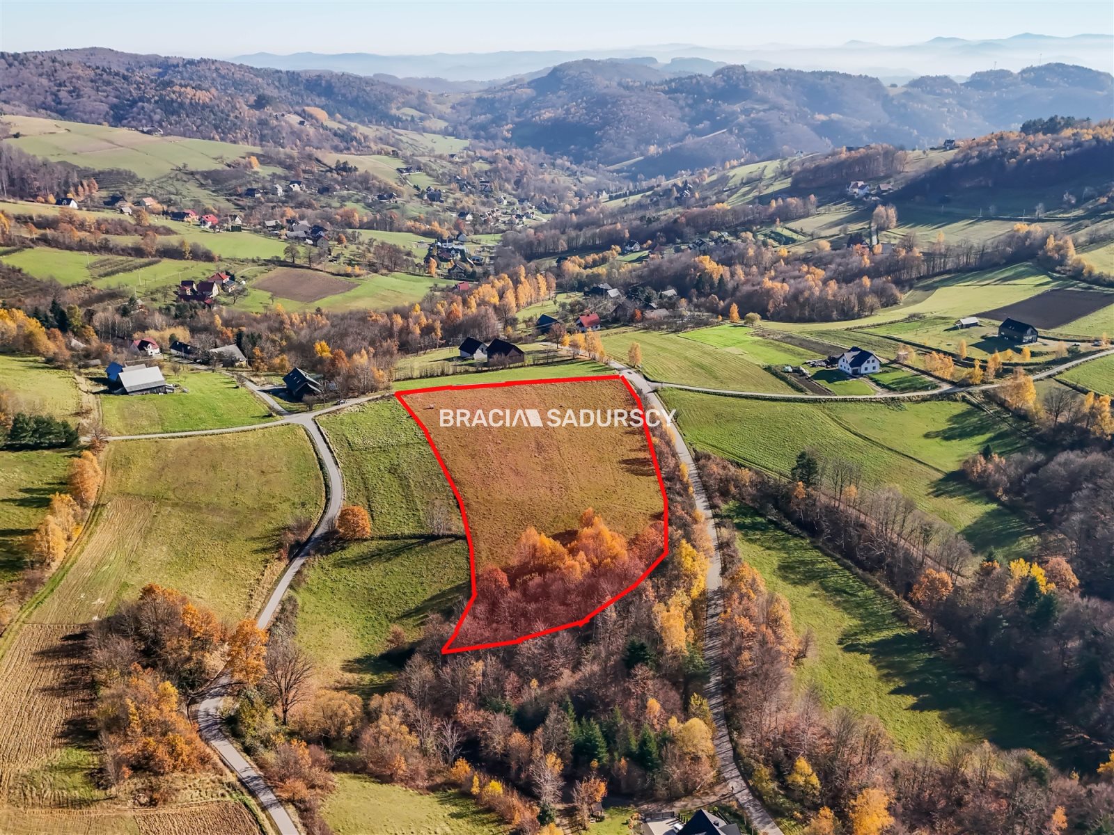 Prezentowana działka (złożona z działek o nr 57/3 i 57/4) położona jest na wzniesieniu, jest lekko pochyła w kierunku wschodnim. Jej najniższą części stanowi niewielka powierzchnia lasu. Nieruchomość oferuje panoramiczny widok na Beskid Wyspowy, okoliczne pagórki i pola. W okolicy dominuje luźna zabudowa. Otoczenie zapewnia poczucie wolności i kontakt z naturą, a jednocześnie gwarantuje komfort sąsiedztwa w rozsądnej odległości. Lokalizacja może być idealną bazą wypadowa w Gorce, Beskid Wyspowy, Makowski czy Tatry i Pieniny.