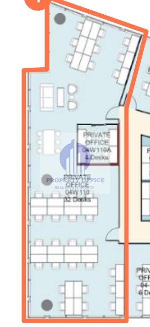 Zamykane w pełni wyposażone biuro, z biurkami, krzesłami i szafkami na dokumenty,