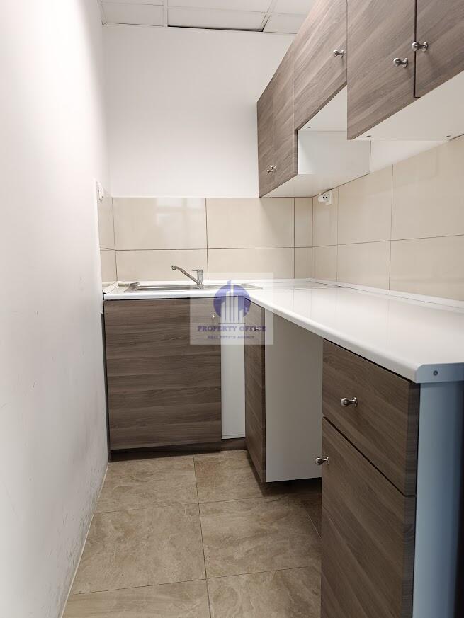 Biuro wyposażone w pełne zaplecze sanitarno-socjalne: aneks kuchenny i łazienka zostały wydzielone na powierzchni lokalu.