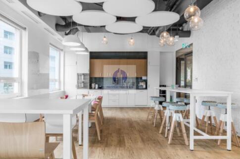 Wnętrze wyróżnia się designerskimi strefami kreatywnymi, salami konferencyjnymi, kuchniami oraz miejscami do relaksu, co zapewnia komfortowe warunki pracy.