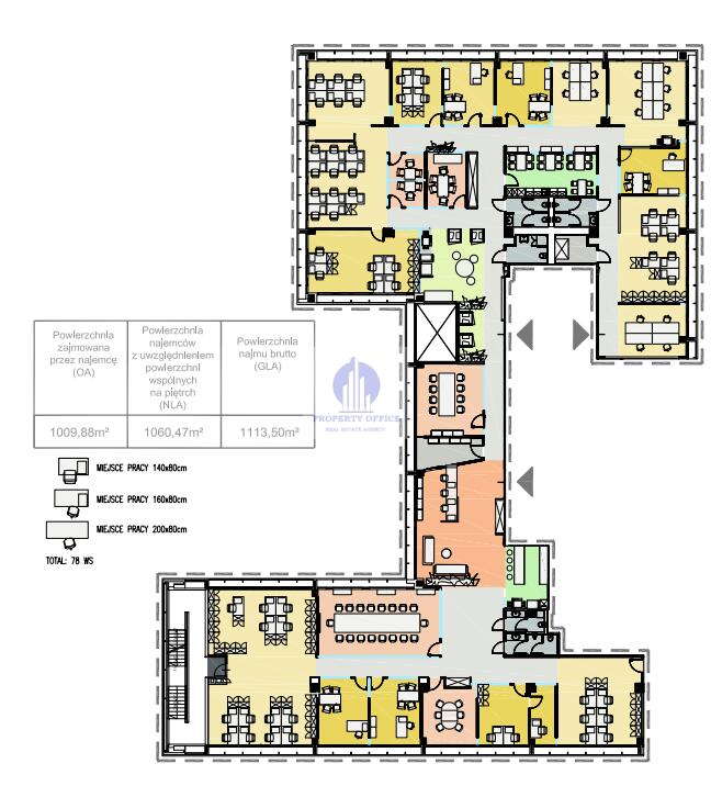 Powierzchnia typowego piętra wynosi około 2 600 m2.