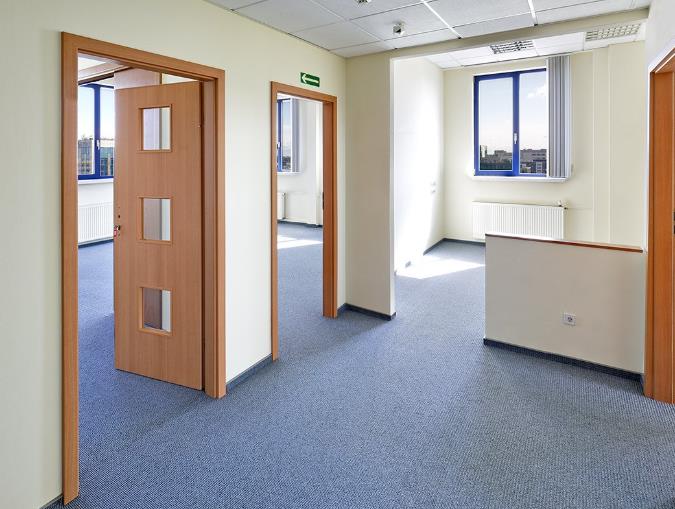 Konstrukcja budynku umożliwia dowolną aranżację powierzchni, zarówno w formule open-space jak i w układzie gabinetowym.