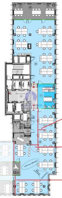 Powierzchnia w podziale mieszanym: open space, gabinety biurowe,sale konferencyjne, salki spotkań, pomieszczenia socjlane i pomocnicze.