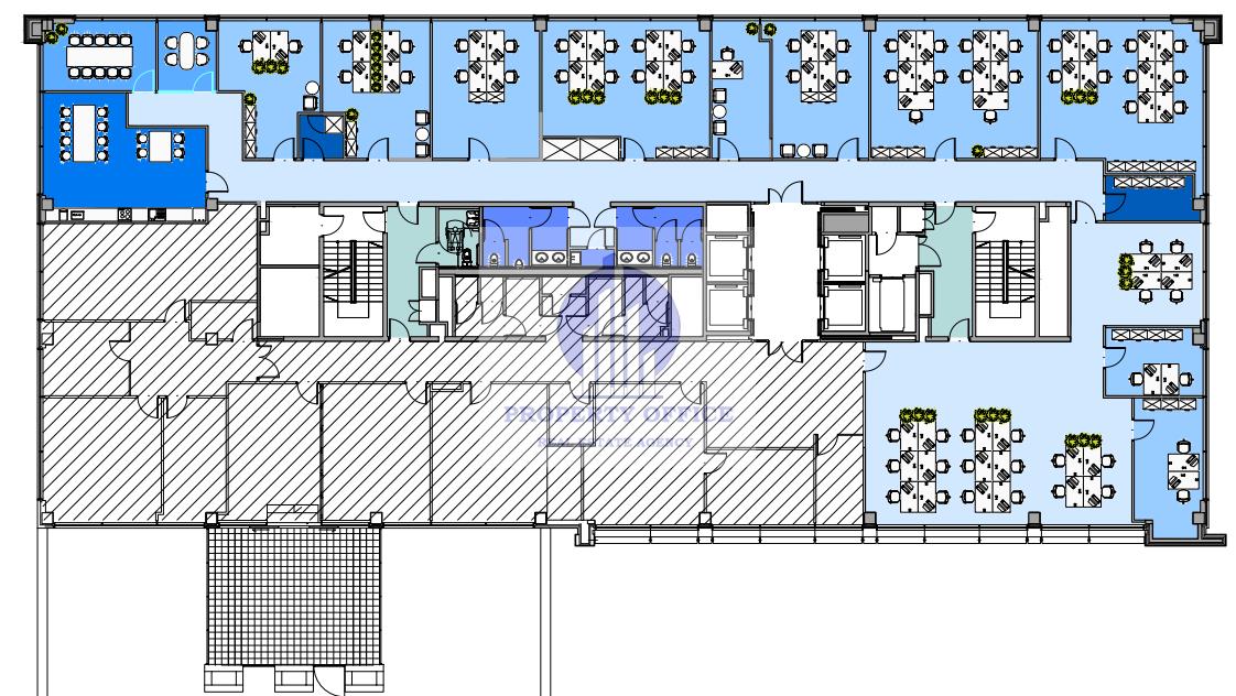 Powierzchnia biurowa w układzie gabinetowym: