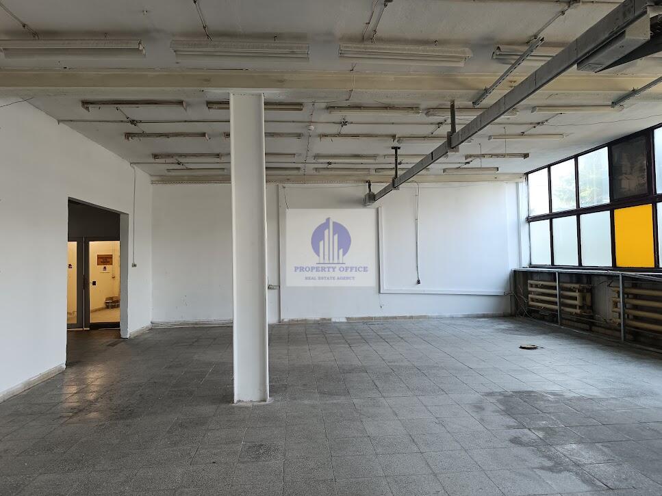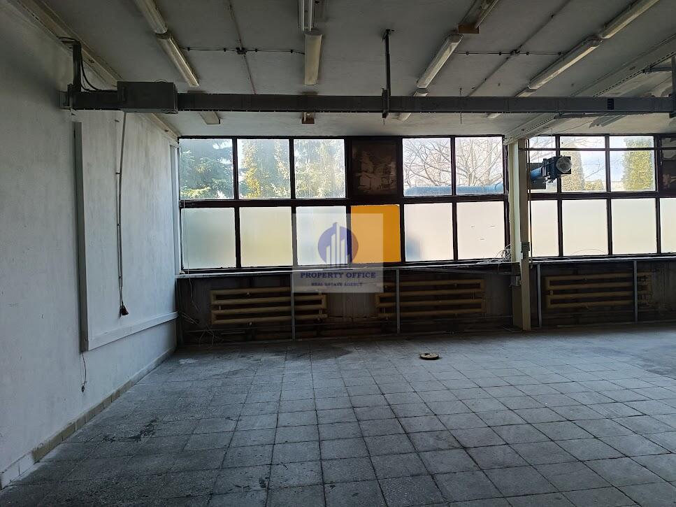 Duże pomieszczenie magazynowe z wydzielonym gabinetem biurowym, magazynkiem, kuchenką i dwoma pomieszczeniami pomocniczymi.