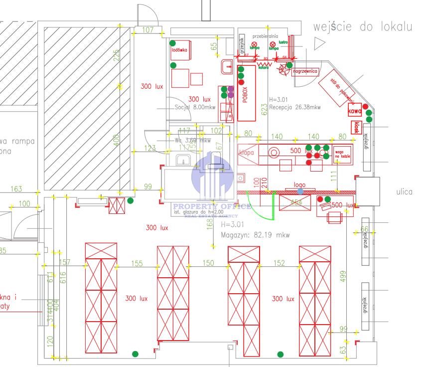 Lokal jest podzielony na części: obsługa klientów, magazyn, pomieszczenia socjalne do wykorzystania lub adaptacji zgodnie z profilem działalności najemcy.