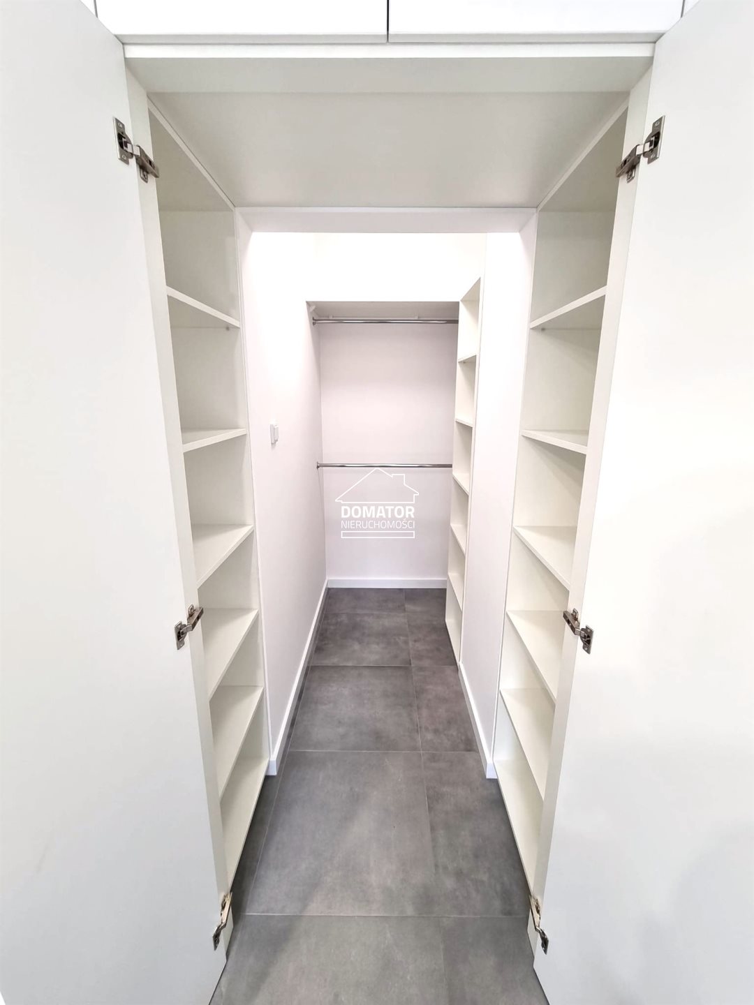 Wnętrze zostało funkcjonalnie przeprojektowane - z połączenia pomieszczeń powstała garderoba z wejściem przez szafę , co zwiększa komfort i przestrzeń użytkową.