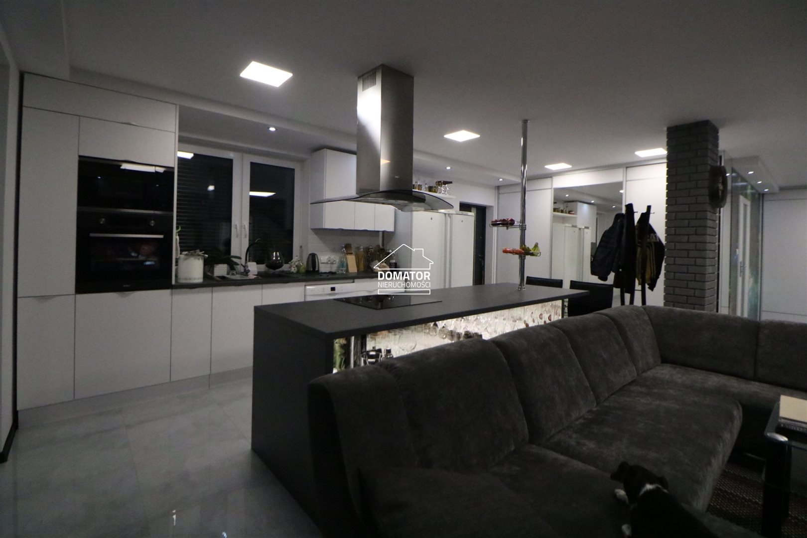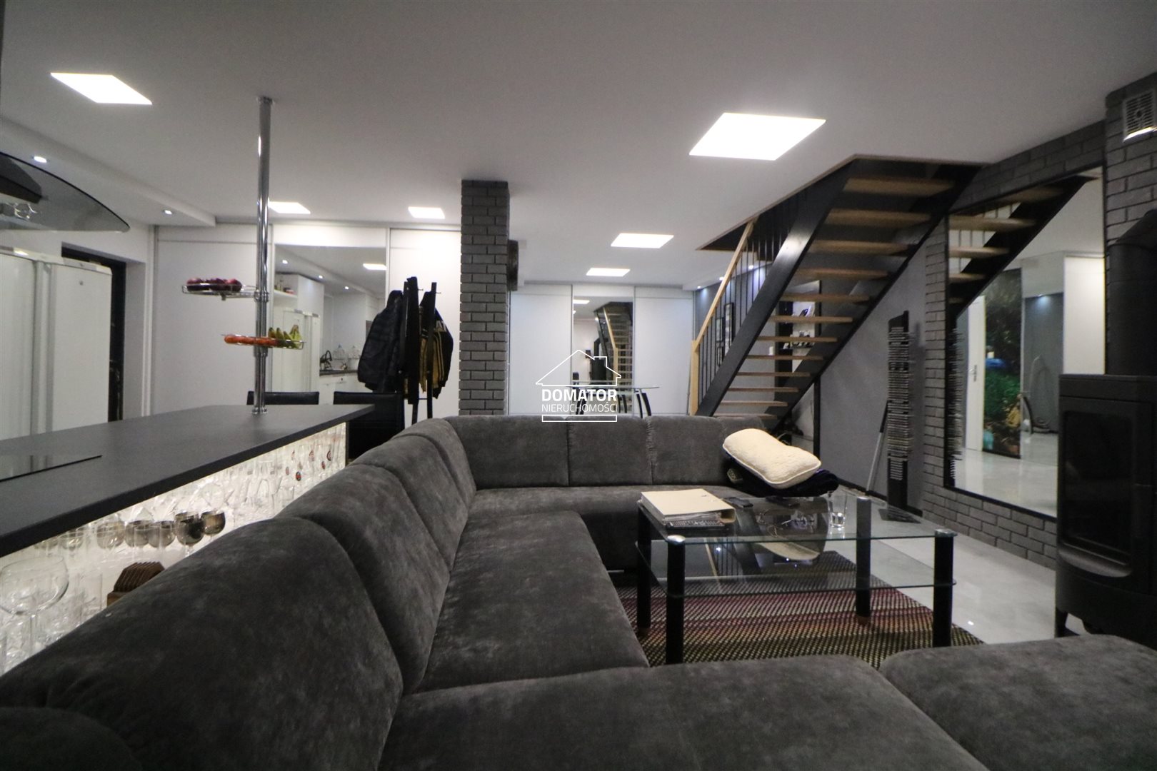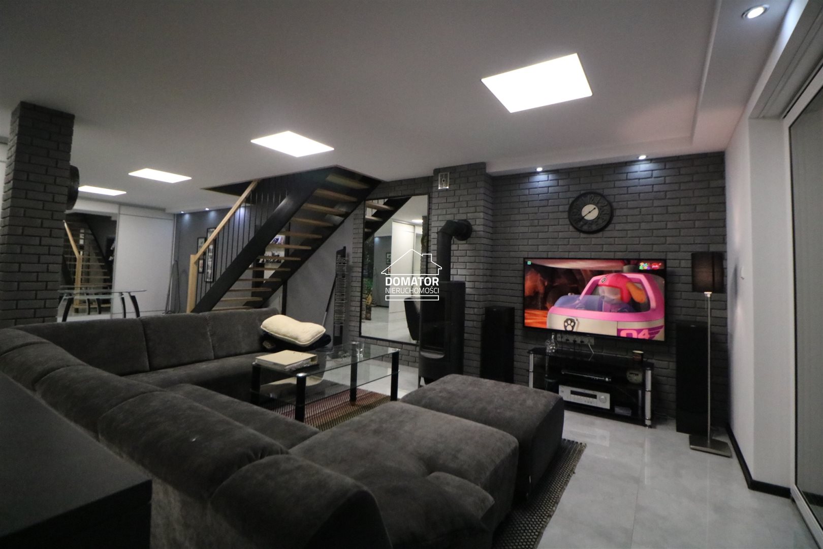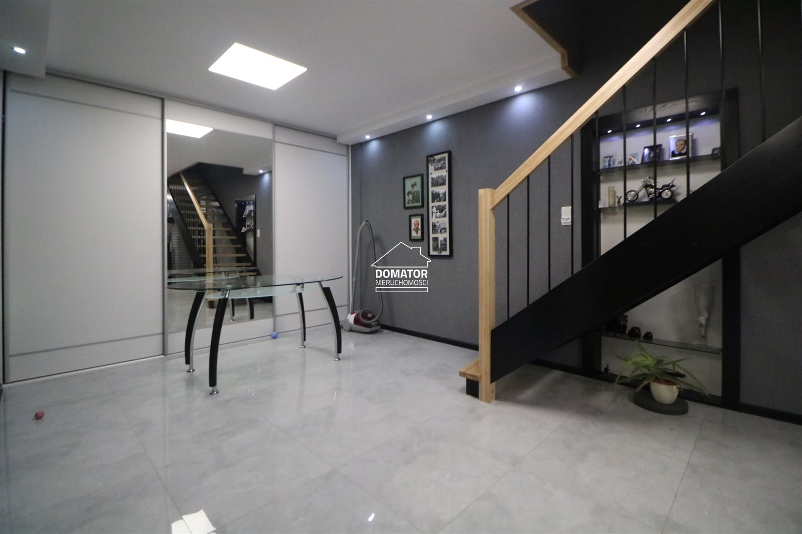 Budynek dwukondygnacyjny, na parterze znajduje się: lokal użytkowy o pow. 110 m2 z hala 30 m2, nad którą mieści się duży pokój, pomieszczenie ok. 30 m2, kotłownia oraz dwa dwupoziomowe mieszkania po ok. 100 m2. Mieszkania na parterze posiadają: przestronny salon z aneksem kuchennym oraz łazienkę, na piętrze znajduje się duża sypialnia. Na piętro prowadzą ładnie wykonane schody z litego drewna. Dom ogrzewany piecem na ekogroszek oraz piecem dwufunkcyjnym na gaz - ogrzewanie podłogowe oraz grzejniki.