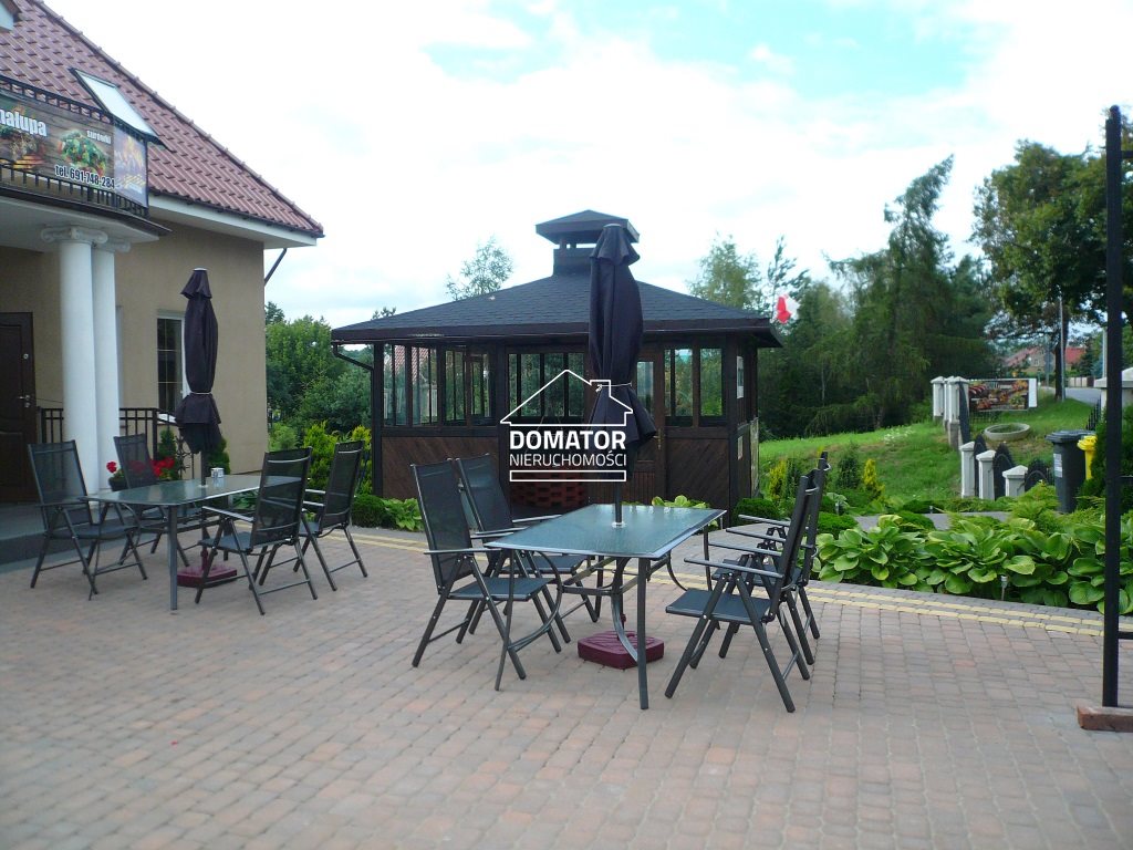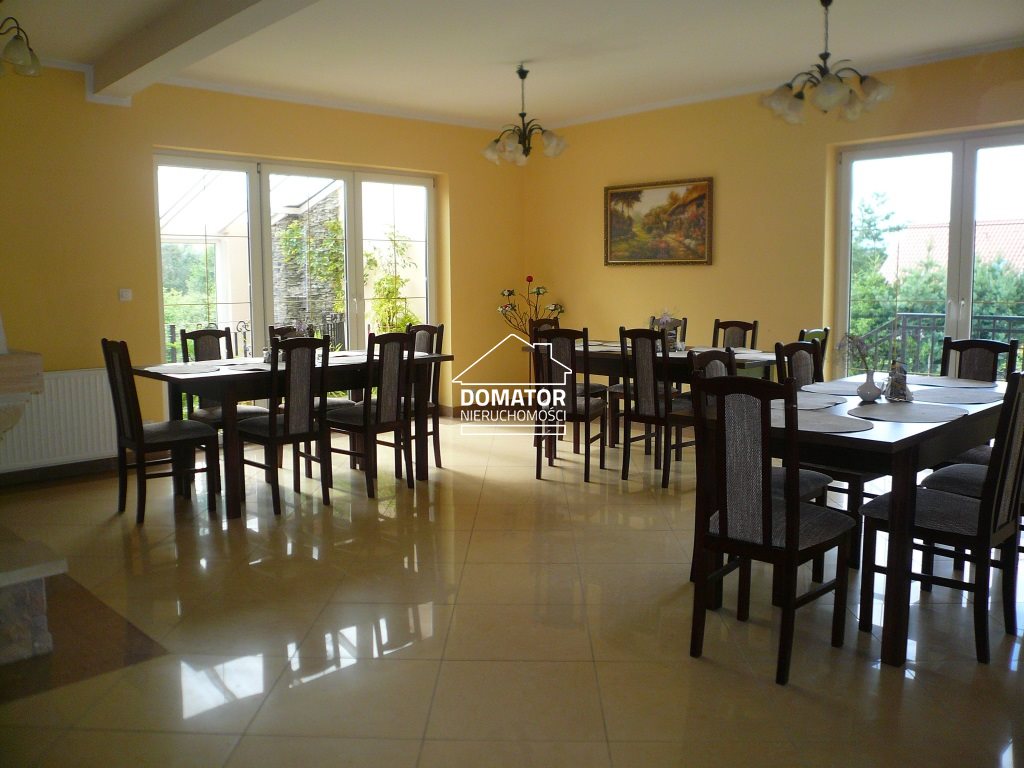 Dom idealnie nadaje się pod działalność gospodarczą. Aktualnie przystosowany pod gastronomię. Do działki, na której położony jest dom bezpośrednio przylega niezagospodarowana działka o powierzchni 1400 m2, doskonale nadaje się pod budowę domu, teren rekreacyjny lub pod inwestycję. Działka ogrodzona, wokół domu ładnie zagospodarowany ogród. Na działce znajdują się panele fotowoltaiczne. Ogrzewanie domu 4 klimatyzatorami grzewczo-chłodzącymi.