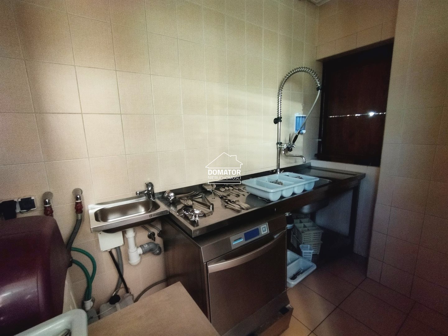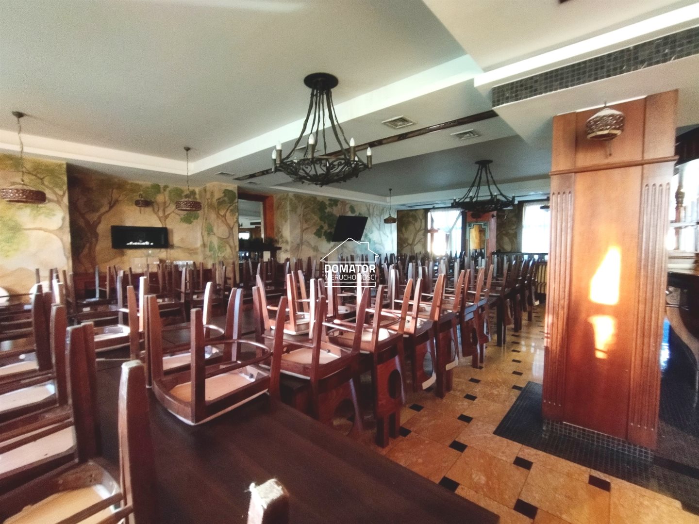 Na piętrze znajdziemy restaurację, która składa się z sali restauracyjnej o powierzchni ok. 80 m2, kuchni z pełnym wyposażeniem gastronomicznym (zaczynając od sztućców na chłodniach i mroźniach kończąc), zmywalni, magazynu, kilku pomieszczeń socjalnych oraz pięknego tarasu o powierzchni ok 70 m2 z widokiem na miasto. Powierzchnia całego poziomu to ok. 268 m2