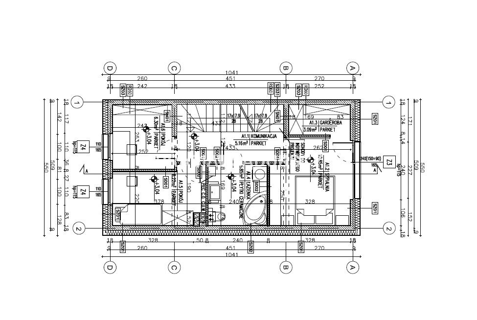 Poddasze (możliwość adaptacji) o powierzchni 18,50 m², we własnym zakresie.