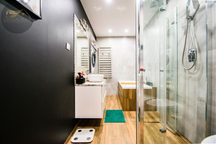 - łazienka wyposażona zarówno w wannę, jak i prysznic