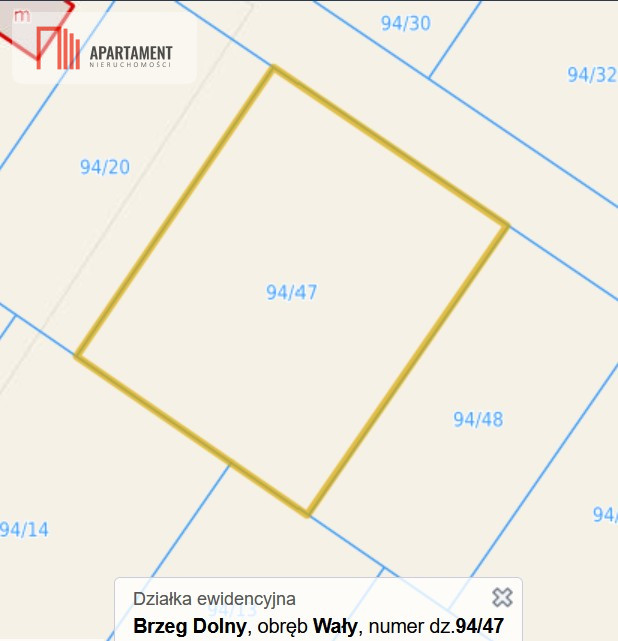 Do sprzedania uzbrojona działka budowlana o powierzchni 1673 m2 w miejscowości Wały gm. Brzeg Dolny w cichym zalesionym miejscu. Dookoła piękna okolica, tylko 50 m dzieli od strzeżonego kąpieliska z wypożyczalnią sprzętu wodnego. Idealne miejsce dla miłośników sportów wodnych. Zgodnie z MPZP przeznaczenie działki: MN - teren zabudowy mieszkaniowej jednorodzinnej. W odległości 4 km - Brzeg Dolny w którym znajdują się: szkoły podstawowe, przedszkola, sklepy, ośrodki zdrowia, galerie handlowe, kryta pływalnia oraz w niedalekiej przyszłości Aquapark. Dojazd do Wrocławia zajmuje tylko 35 minut.