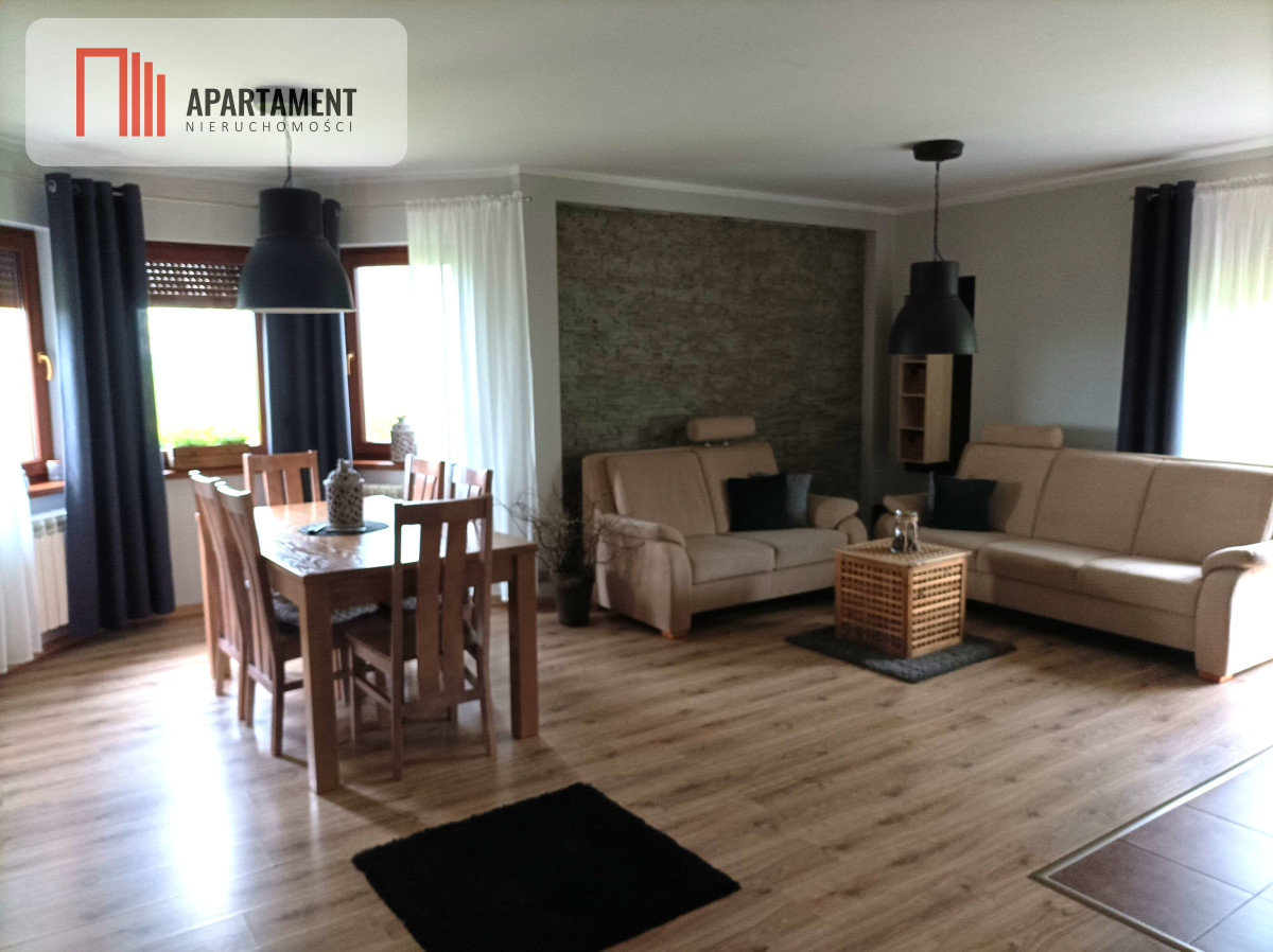 Uroczy, dom jednorodzinny - Tuchola, gustownie zaaranżowany i starannie wykonany, wolnostojący. Nieruchomość zlokalizowana ok 600m od nowej atrakcji turystyczne - promenady nad taflą jeziora Głęboczek gdzie mieści się również kąpielisko miejskie. Bardzo ładnie zagospodarowana działka. Efektowne ogrodzenie, altana ogrodowa z podświetleniem grill ogrodowy, ogródek z ładnymi nasadzeniami. Nieruchomość usytuowana w cichej i spokojnej okolicy. W bryle budynku jest garaż z kanałem i automatycznie zamykaną bramą, dodatkowo na posesji drugi garaż blaszany na tzw "przydasie" oraz drewutnia na drwa do kominka. Dom gotowy do zamieszkania bez jakichkolwiek nakładów. Ogrzewanie ne tę chwilę realizowane przez nowoczesny piec na ekogroszek w pełni zautomatyzowany z zasobnikiem ciepłej wody użytkowej. W budynku jest gaz i można zastosować ogrzewanie gazowe. Kuchnia wyposażona w płytę typu gaz w szkle marki "Solgaz". Parter obejmuje duży salon z aneksem kuchennym w którym znajduje się klimatyczny kominek, oraz pokój gościnny i obszerna łazienka. Na piętrze mamy trzy sypialnie oraz pokój łazienkowy, garderoba z pralnią i suszarnią.