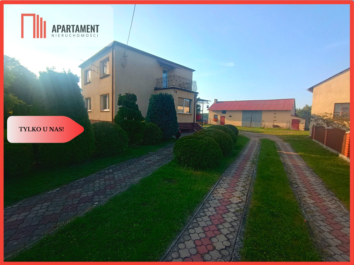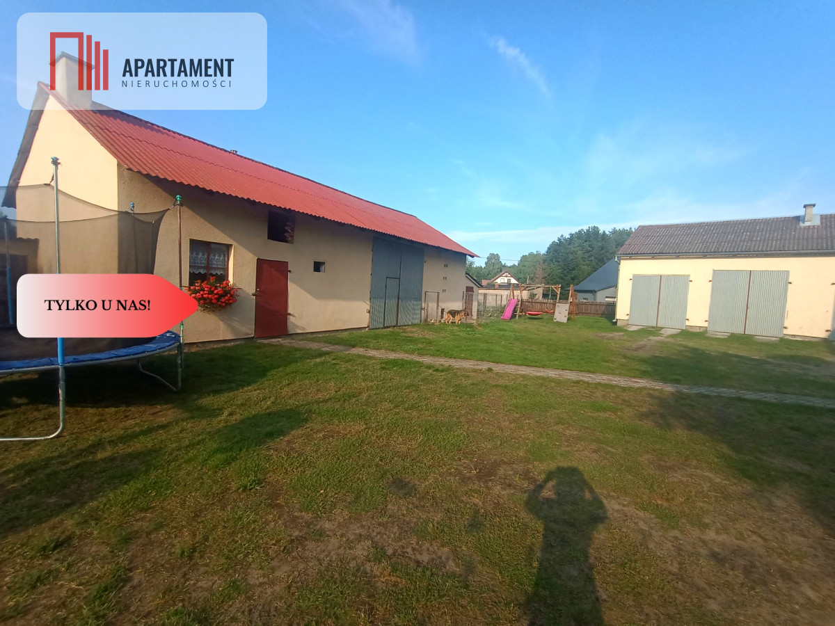 Na działce znajdują się dwa sporej wielkości budynki jednym z nich jest obiekt gospodarczy 78m2 z poddaszem 34m2 kolejnym jest garaż 3 stanowiskowy 60,5m2 w którym dodatkowo znajduje się kanał.