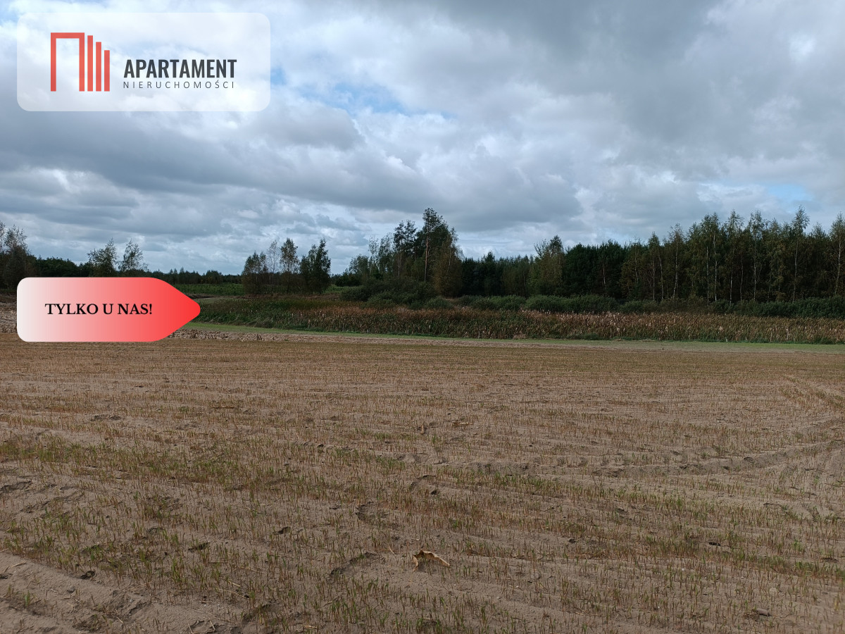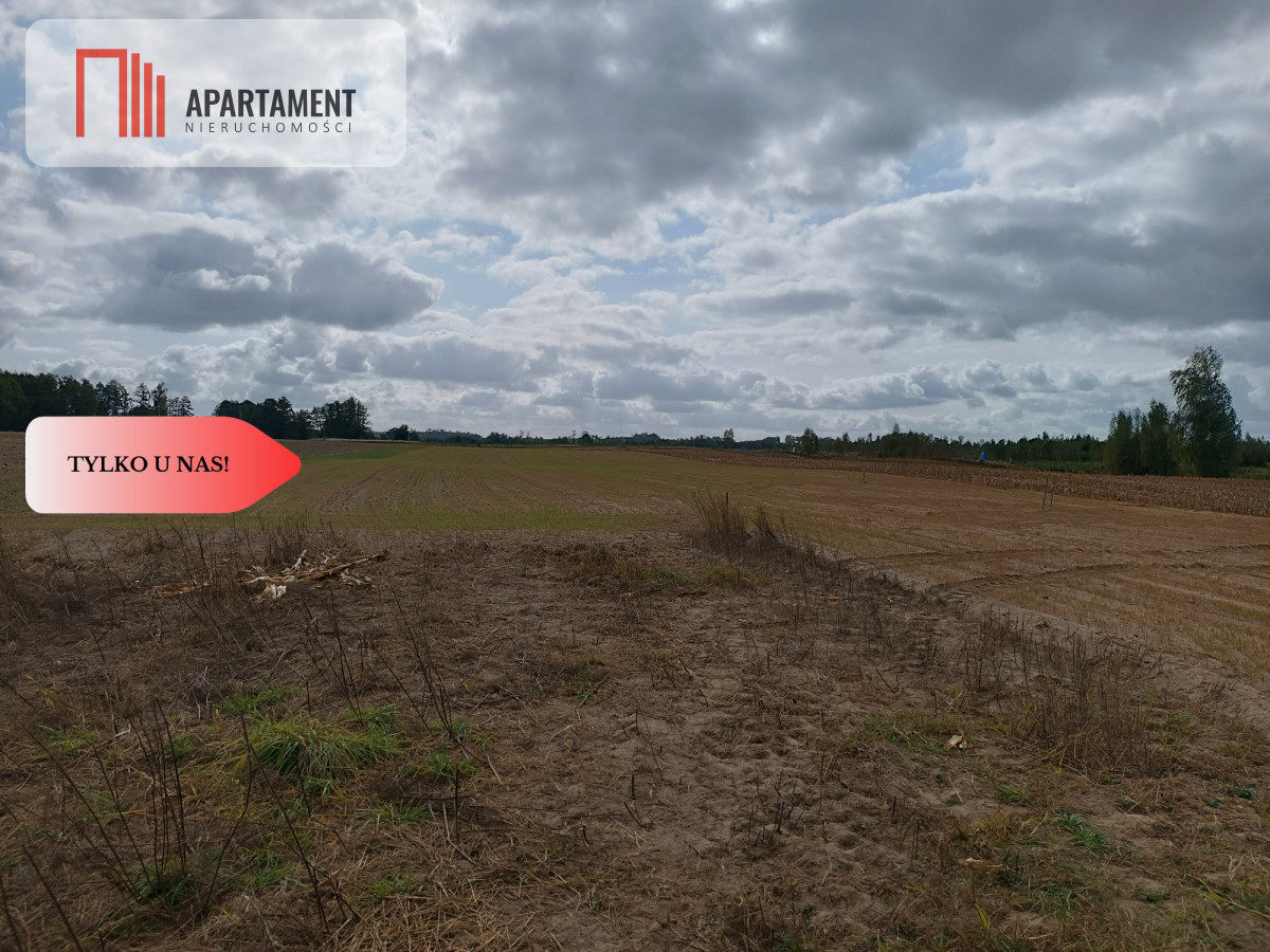 Działka o powierzchni 4300 m2, płaska. Dojazd drogą gruntową.