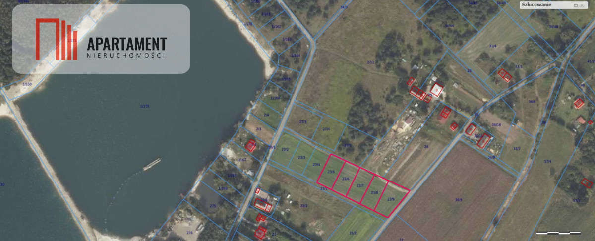 Powierzchnia działek: 23/5-0,0999ha, 23/6-0,0998ha, 23/7-0,0,0998ha, 23/8-0,0,0997ha, 23/9-0,1213ha
