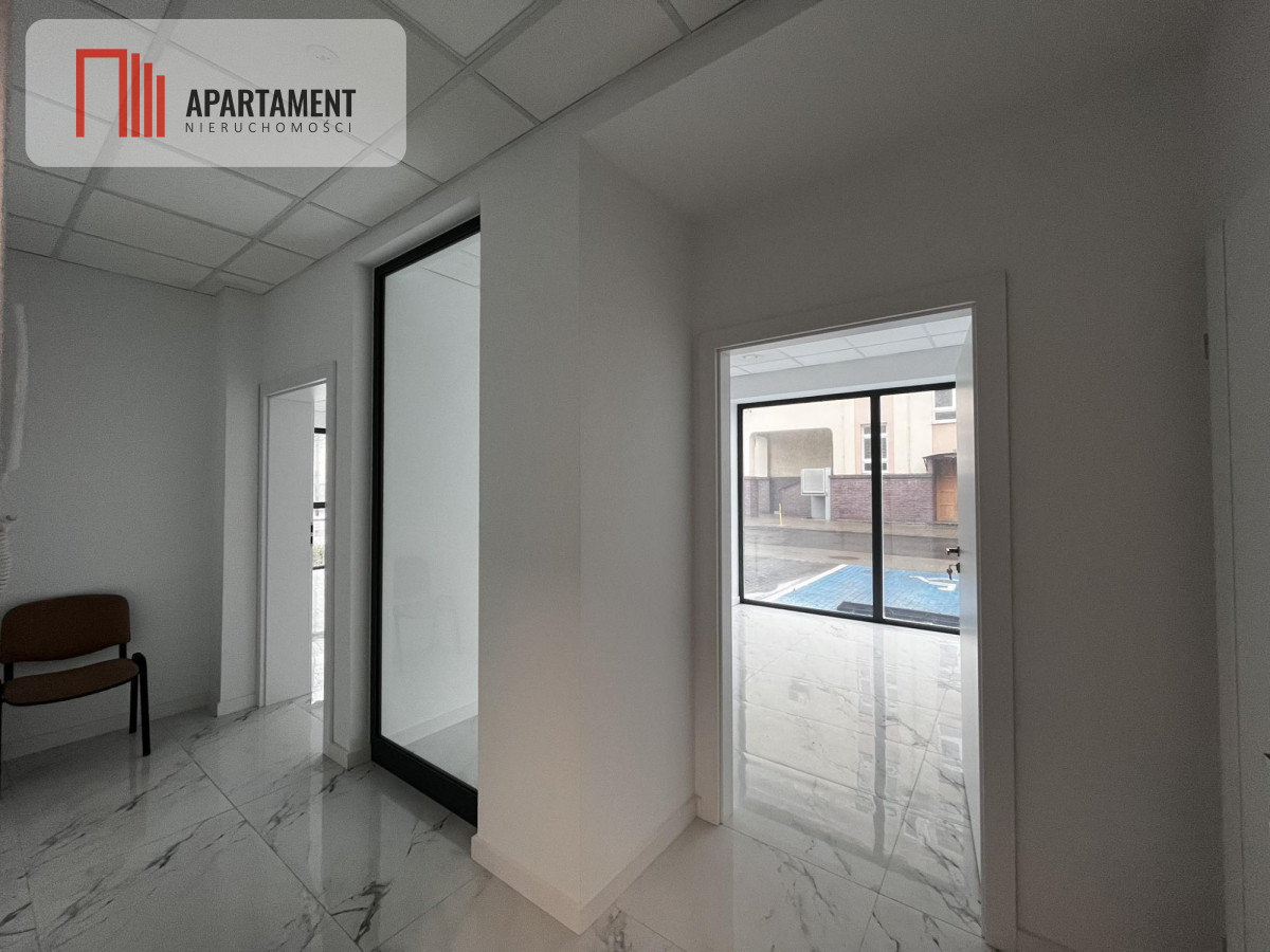 Niezwykle przestronny lokal usługowy o łącznej powierzchni 49m². Lokal składa się z dwóch pomieszczeń głównych oraz pokoju socjalnego z toaletą. Idealne na biuro/gabinet lekarski, biuro adwokackie. Parking przed budynkiem. Za dodatkową opłatą miejsce dedykowane dla lokalu.