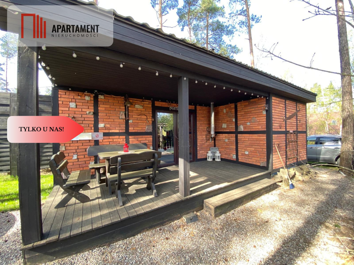 Przy domku duży taras, idealne miejsce na wieczorne posiedzenie przy świetle klimatycznego oświetlenia, zaś rankiem poranna kawa przy akompaniamencie śpiewu ptaków.