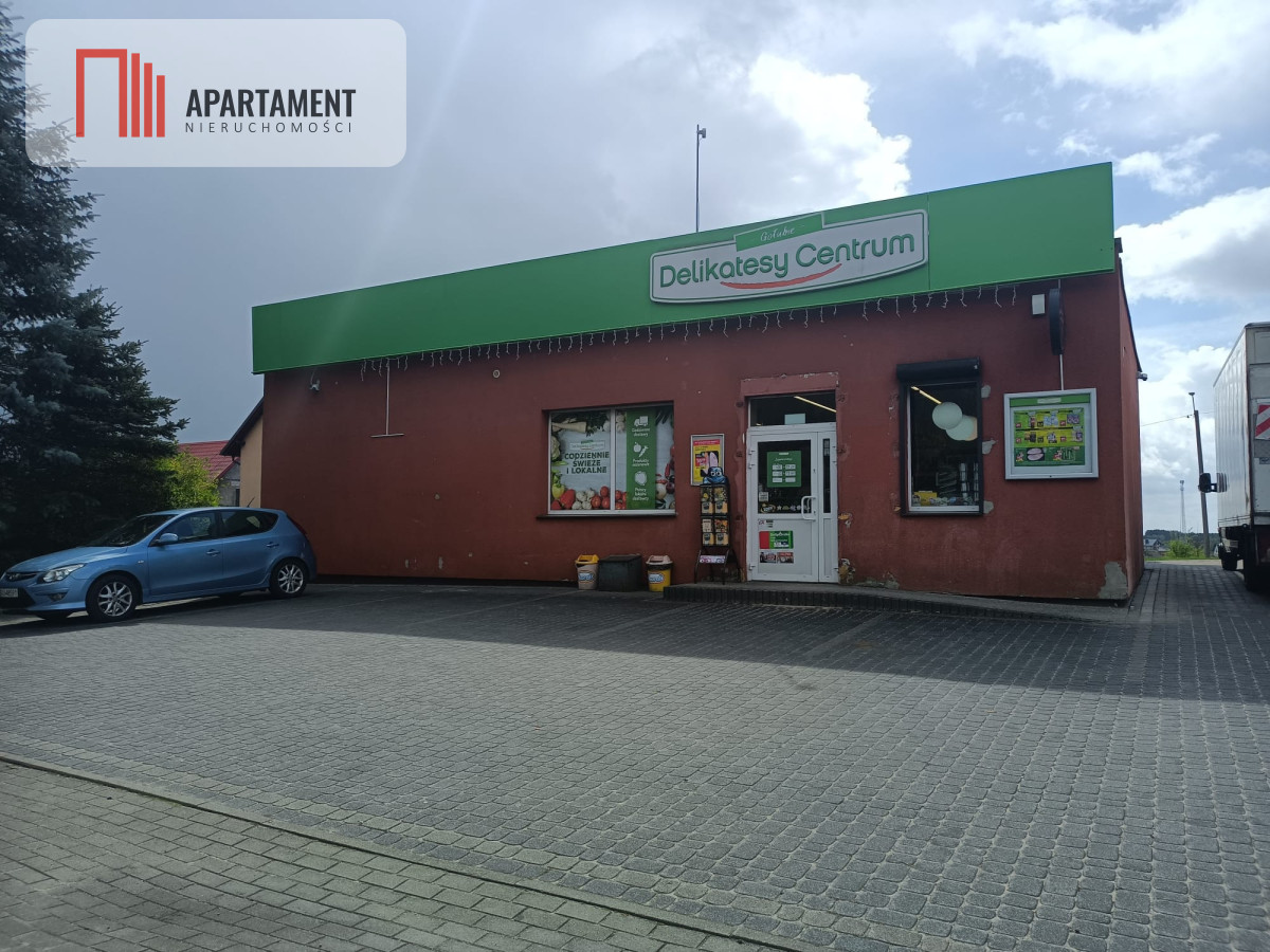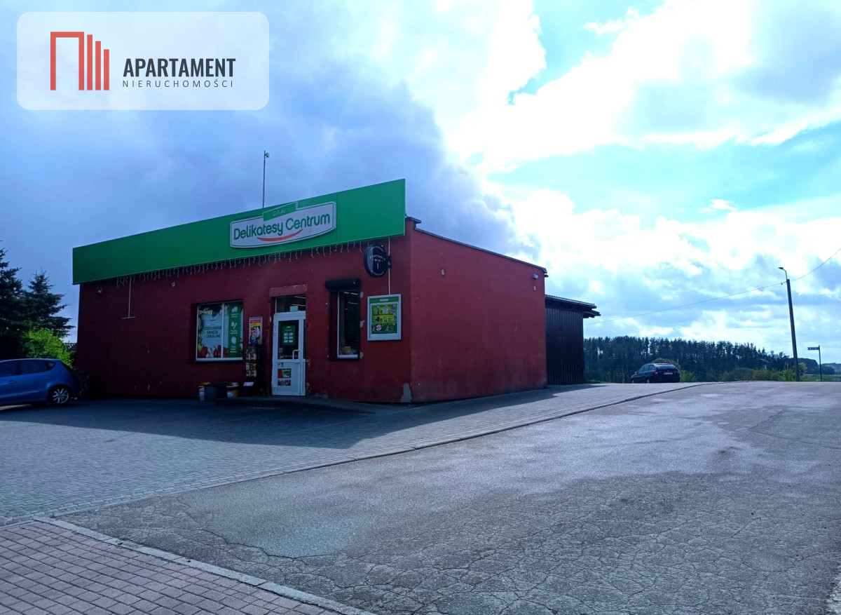 Na działce znajduje się obecnie lokal handlowo-usługowy o powierzchni ponad 100 m2 generujący stały ruch klientów, szczególnie nasilony w sezonie letnim. Budynek z zapleczem magazynowym oraz podpiwniczeniem. W lokalu znajduje się sala sprzedaży oraz część socjalna, biurowa i pomieszczenie chłodni. Przed budynkiem parking z bezpośrednim wjazdem z drogi głównej. Spora część placu na tyłach obiektu jest obecnie niezagospodarowana. Na sąsiednich działkach znajdują się zabudowania jednorodzinne.