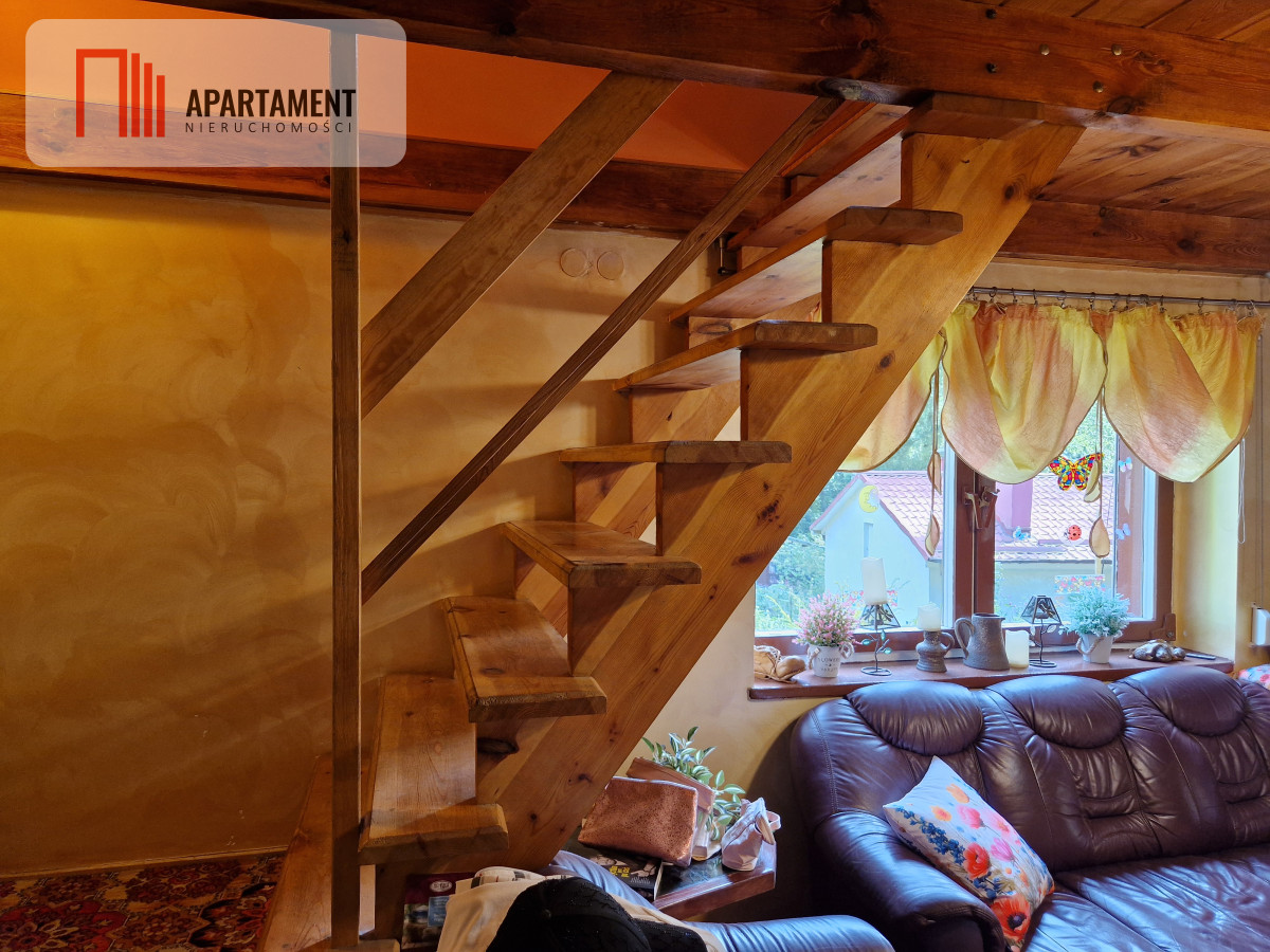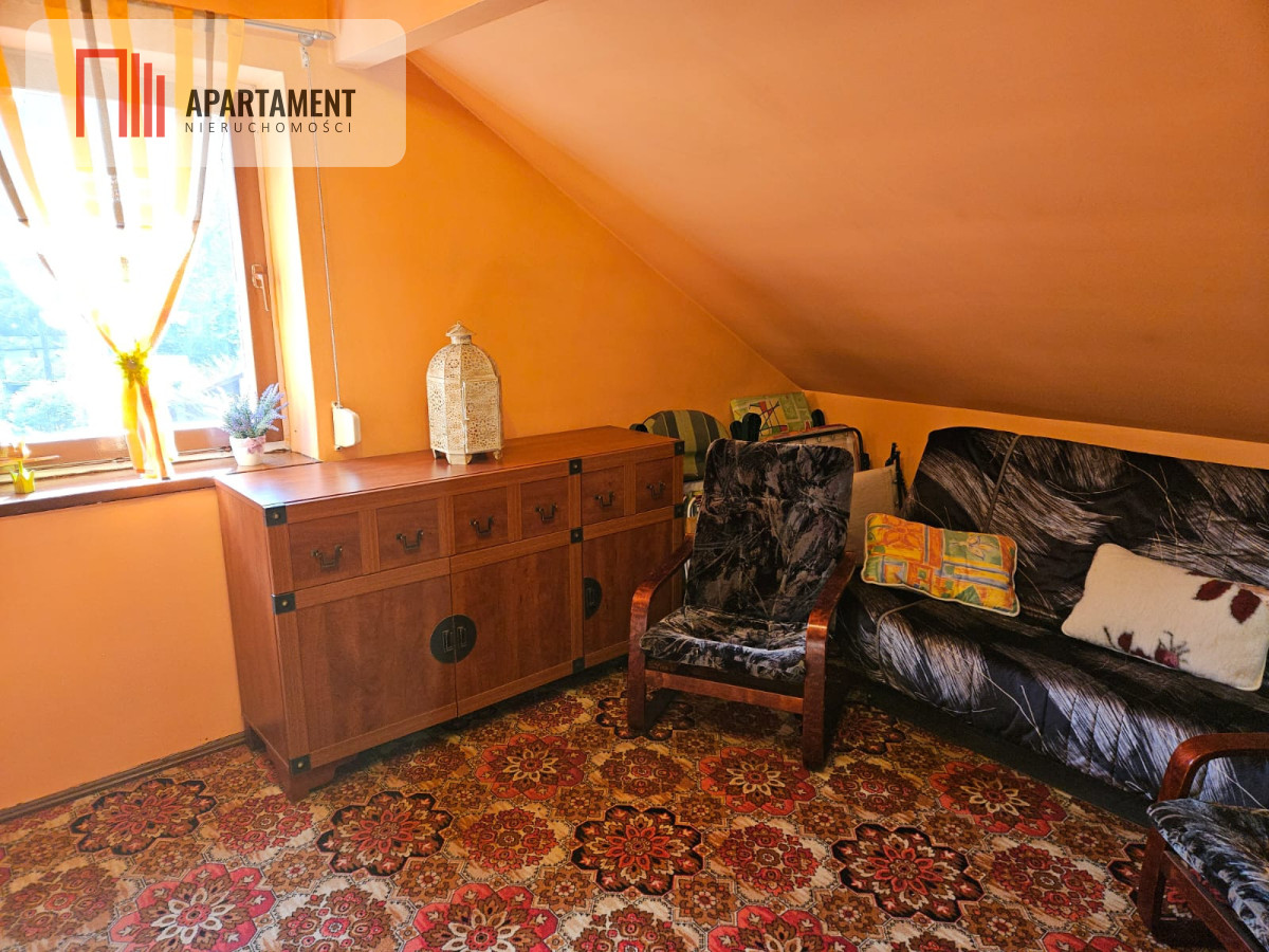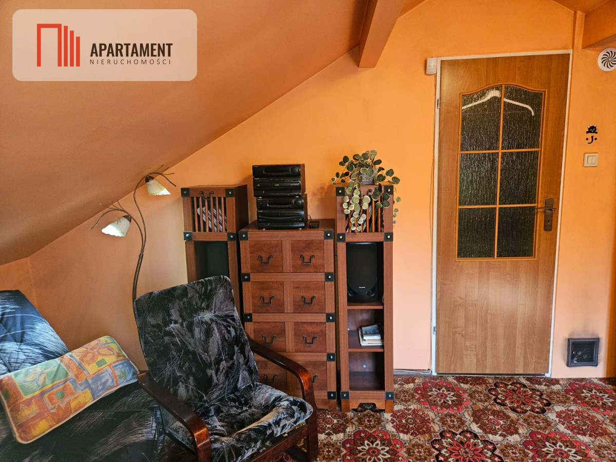 Dom wybudowany w 1997r., zmodernizowany w 2010r. Posiada otwarty salon (21,8mkw.) z bezpośrednim wyjściem na taras (18mkw.), kuchnię (7,2mkw.), łazienkę (5,6mkw.) oraz 2 sypialnie (12 i 15mkw.) na piętrze. Okna w domu są drewniane nowego typu z roletami zewnętrznymi antywłamaniowymi. Na podłogach parteru płytki ceramiczne, na piętrze wykładzina. Dach stanowi również zadaszenie nad wejściem do domu i tarasem. Wykonany z konstrukcji drewnianej, wydeskowany, ocieplony i pokryty blachodachówką.