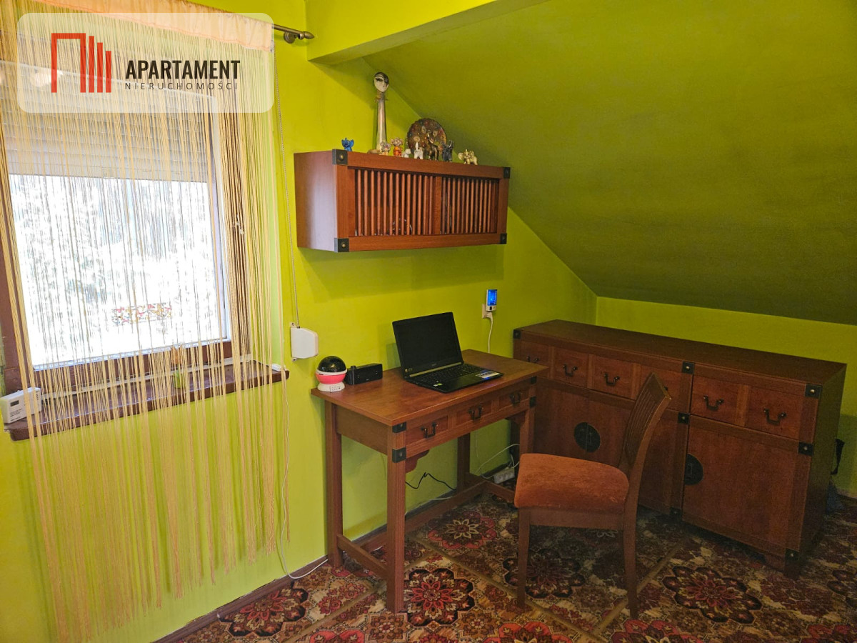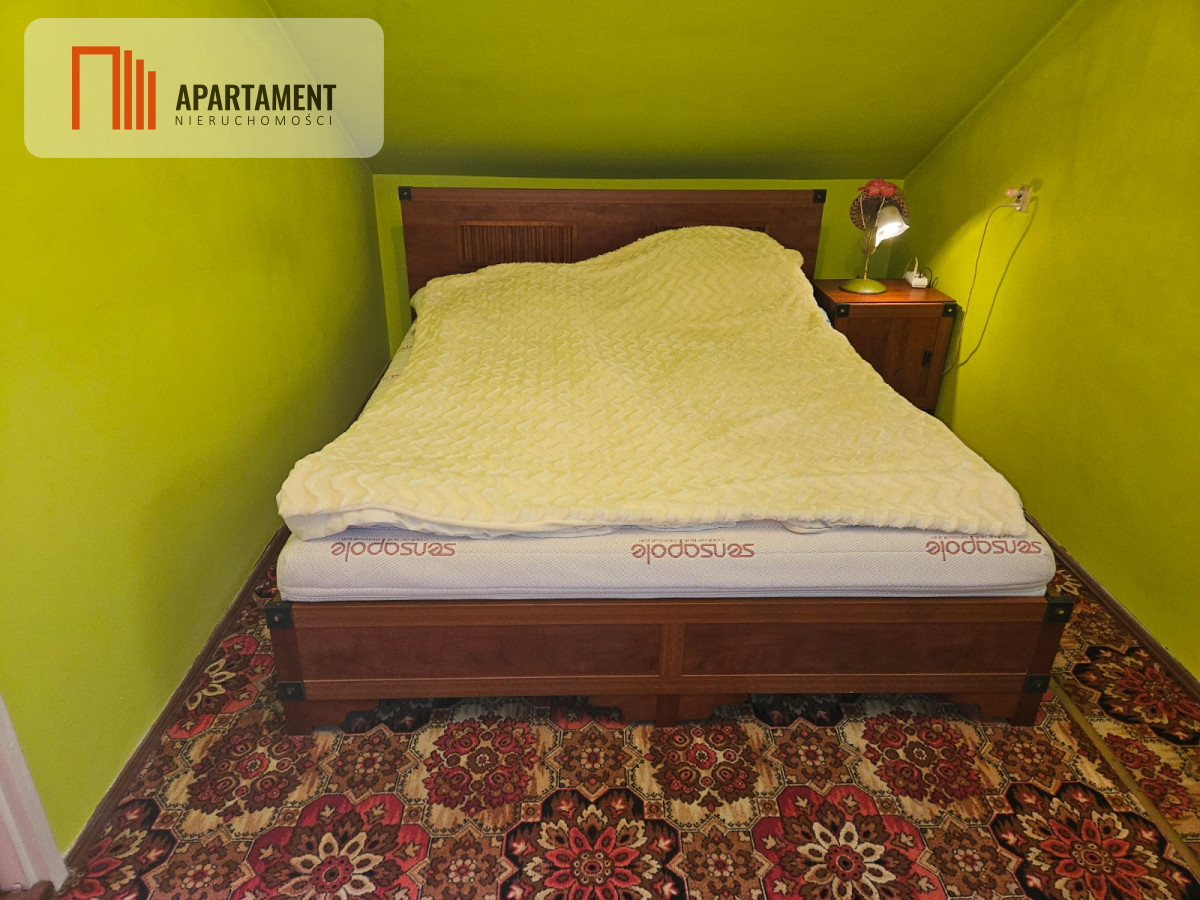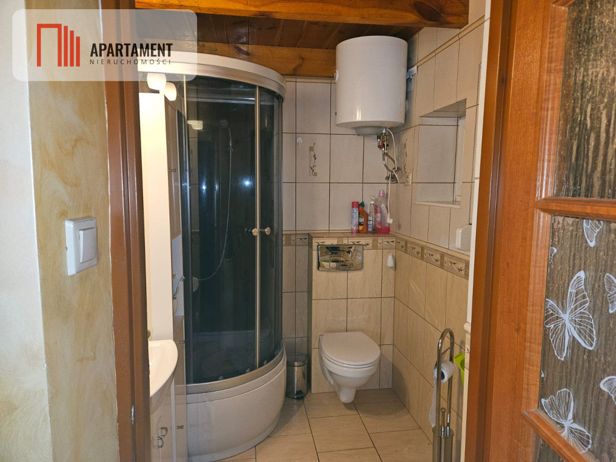 Dom wybudowany w 1997r., zmodernizowany w 2010r. Posiada otwarty salon (21,8mkw.) z bezpośrednim wyjściem na taras (18mkw.), kuchnię (7,2mkw.), łazienkę (5,6mkw.) oraz 2 sypialnie (12 i 15mkw.) na piętrze. Okna w domu są drewniane nowego typu z roletami zewnętrznymi antywłamaniowymi. Na podłogach parteru płytki ceramiczne, na piętrze wykładzina. Dach stanowi również zadaszenie nad wejściem do domu i tarasem. Wykonany z konstrukcji drewnianej, wydeskowany, ocieplony i pokryty blachodachówką.