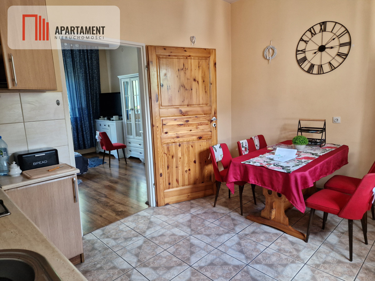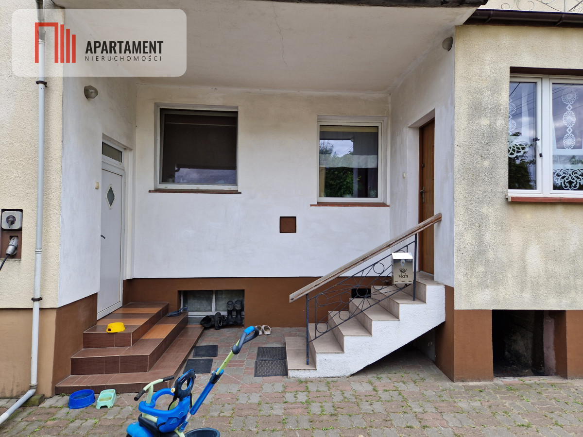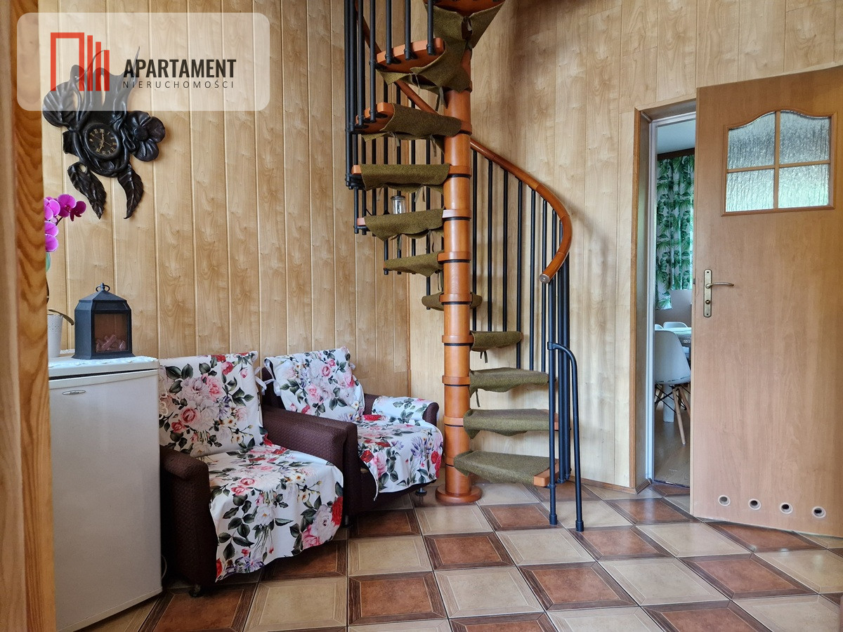 Drugie mieszkanie - na parterze znajduje się kuchnia, 2 pokoje, przedpokój, skrytka, klatka schodowa. Górna kondygnacja składa się z pokoju, łazienki z wanną i przedpokoju z wyjściem na taras. Na podłogach znajdują się panele i płytki ceramiczne, okna PCV dwuszybowe roletami wewnętrznymi.