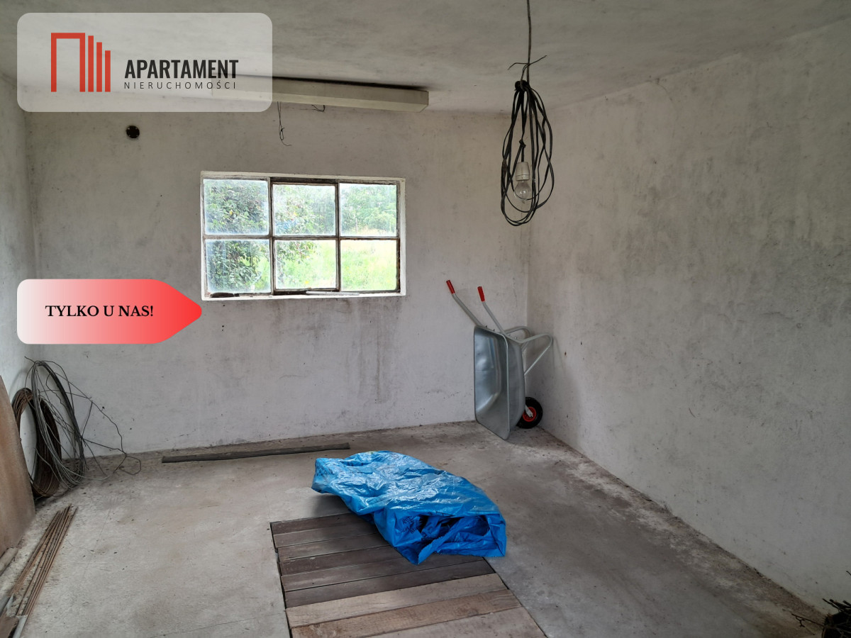 Teren zabudowany jest budynkiem gospodarczym z garażem i kanałem o powierzchni około 70 mkw. w podstawie, dodatkowo można zagospodarować poddasze użytkowe.